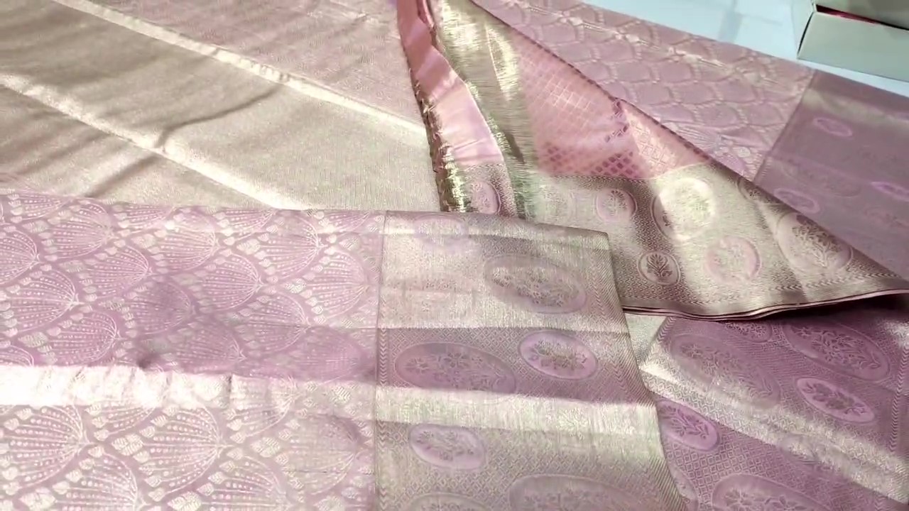 Onion Pink Kanchipuram Handloom Tissue Brocade Silk Saree