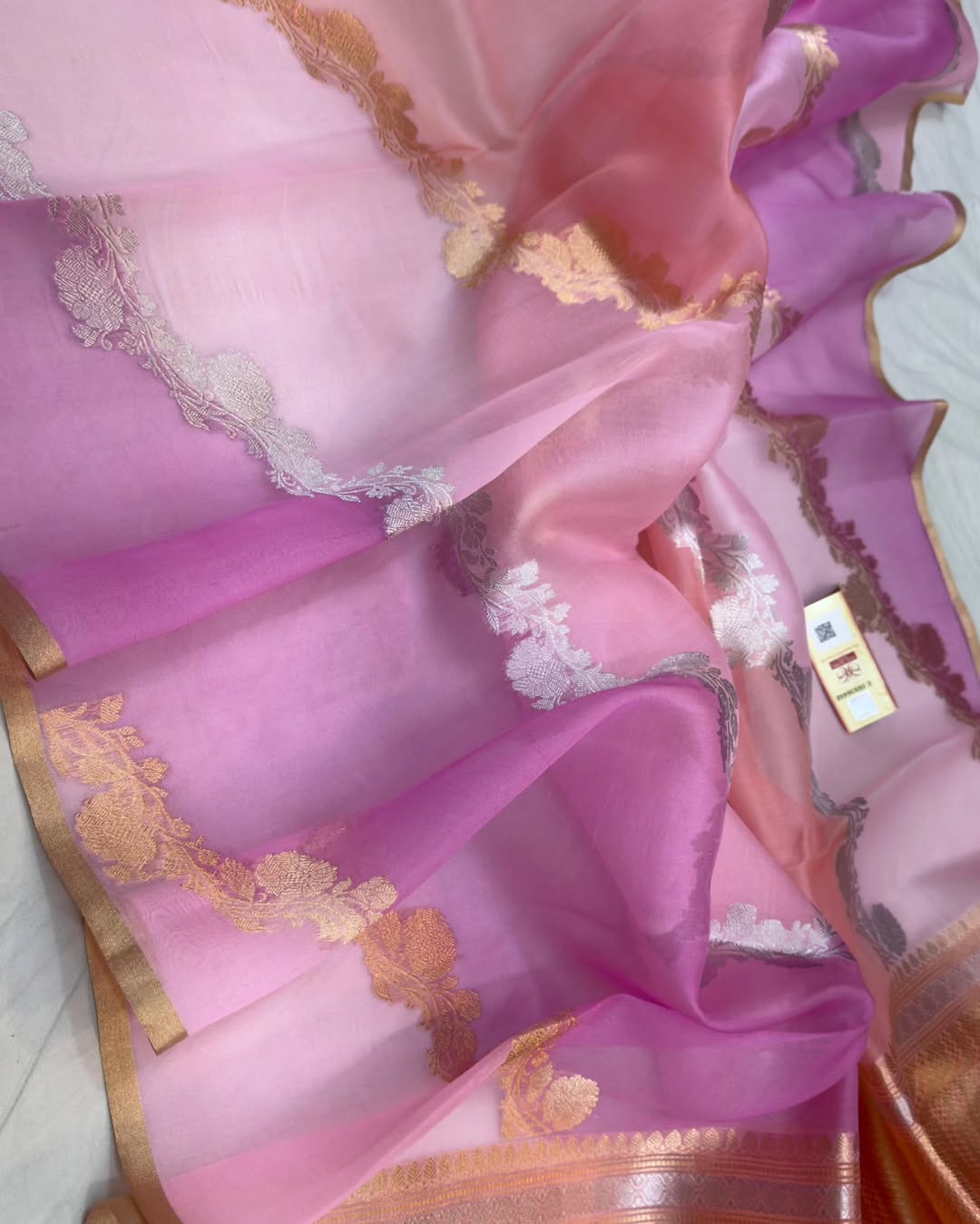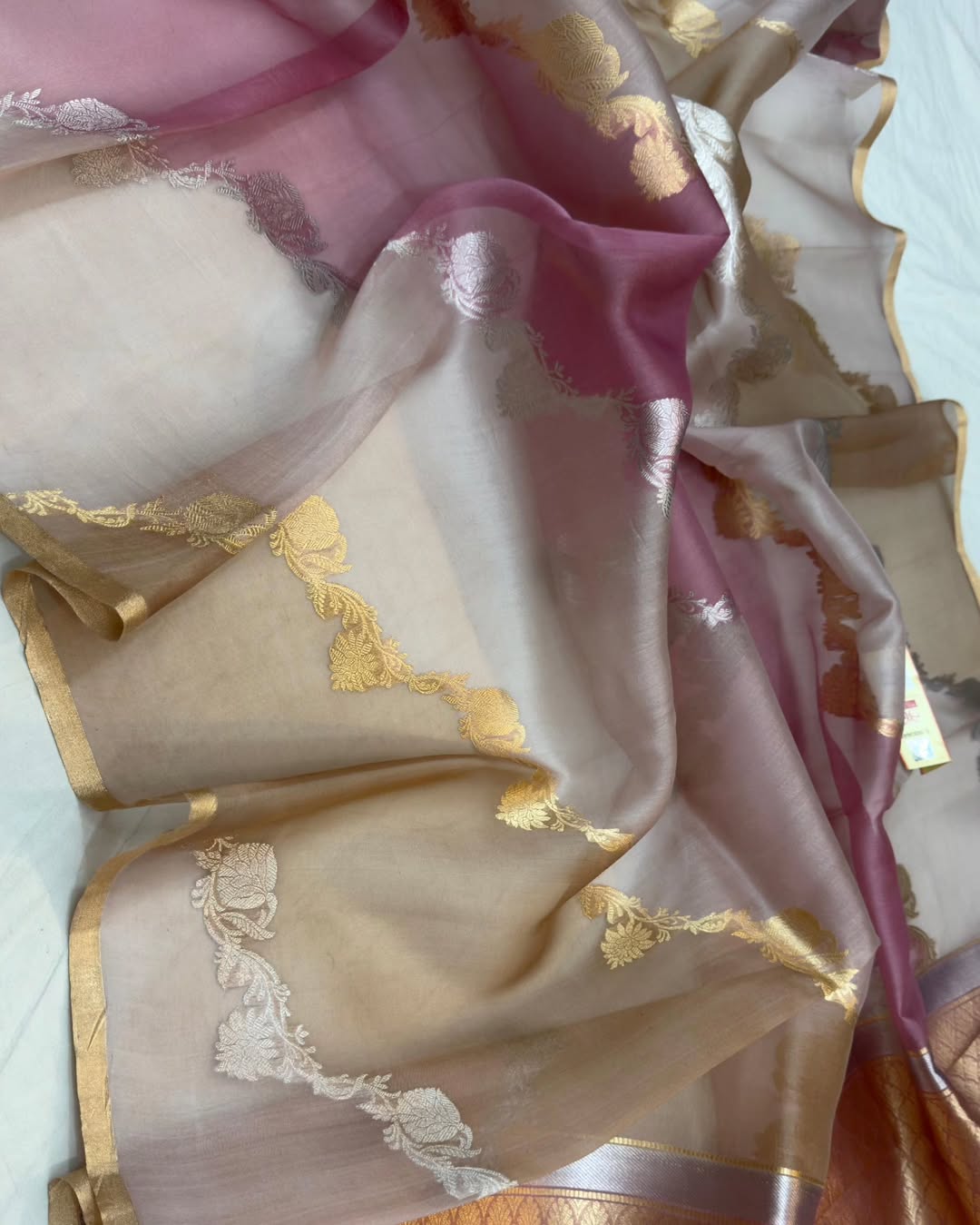 Rose Banarasi Handloom Kora Organza Silk Saree