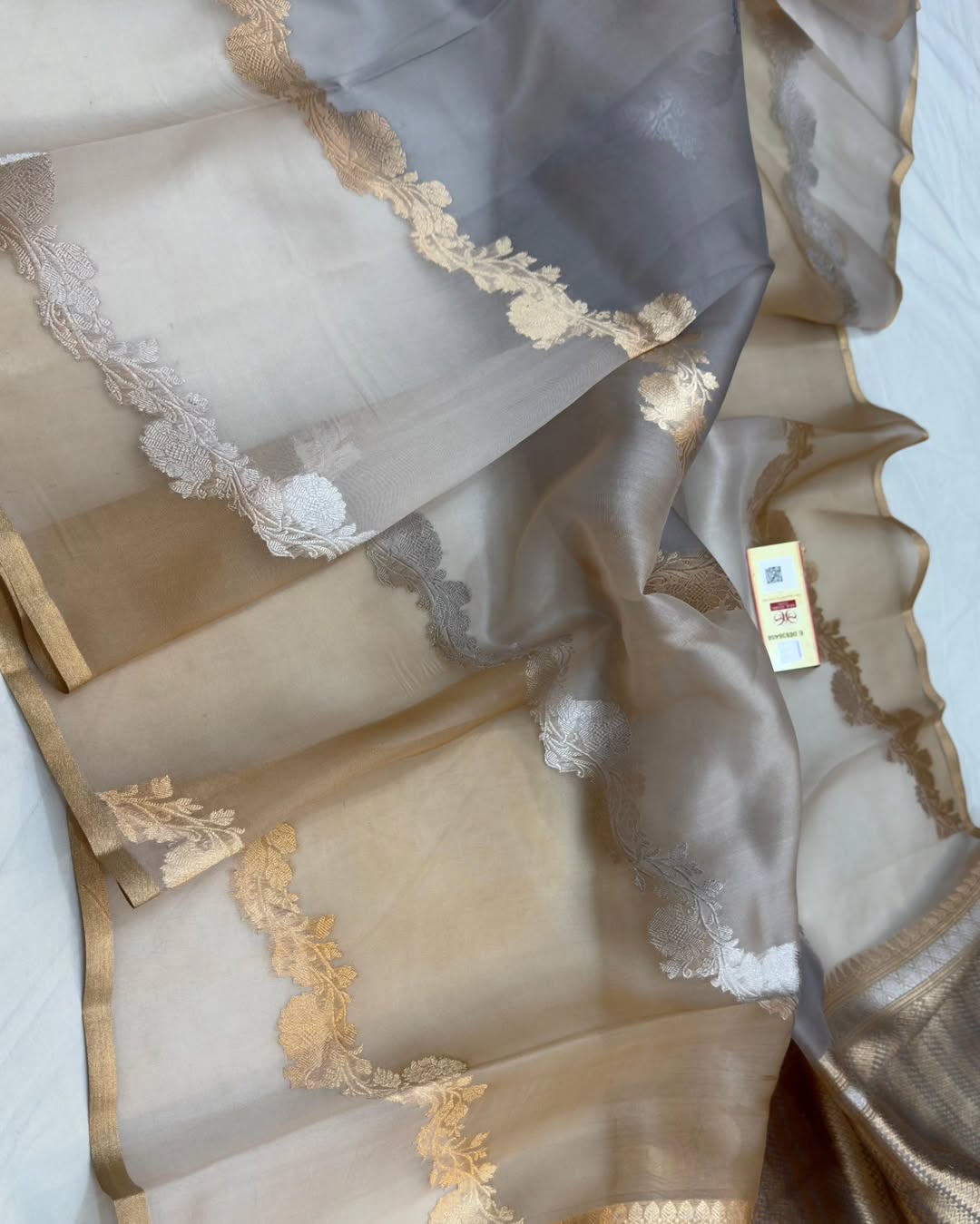 Grey Banarasi Handloom Rangkat Kora Tissue Silk Saree