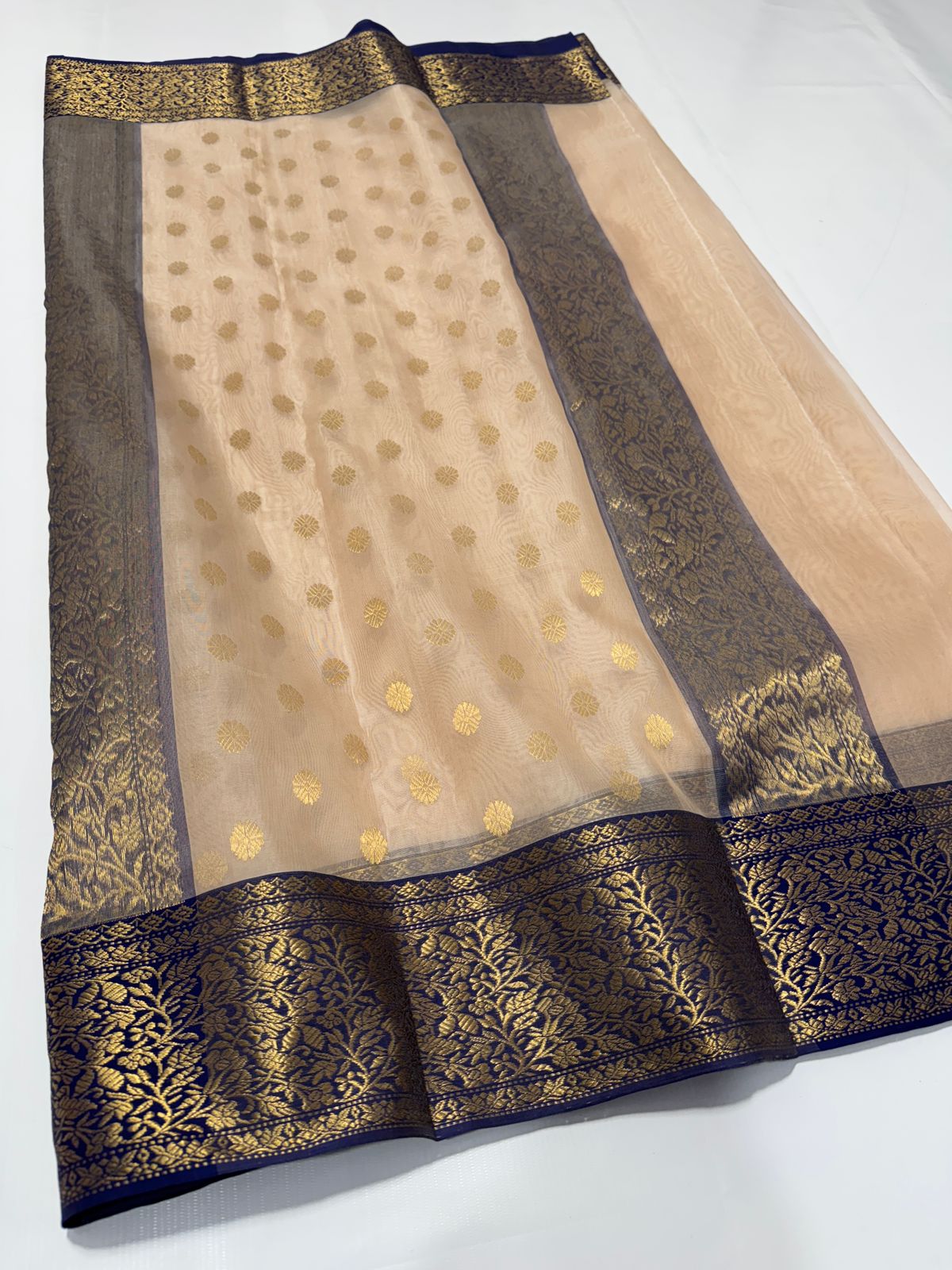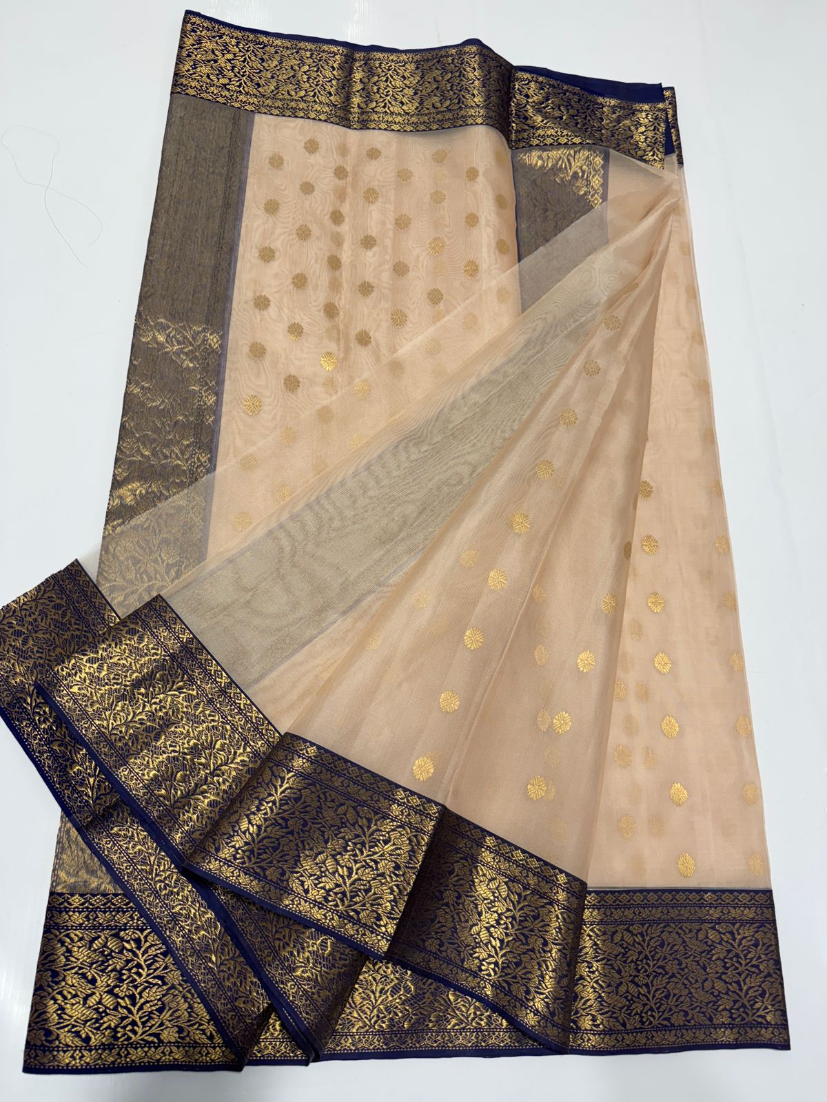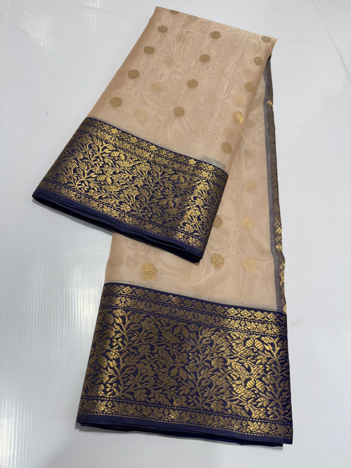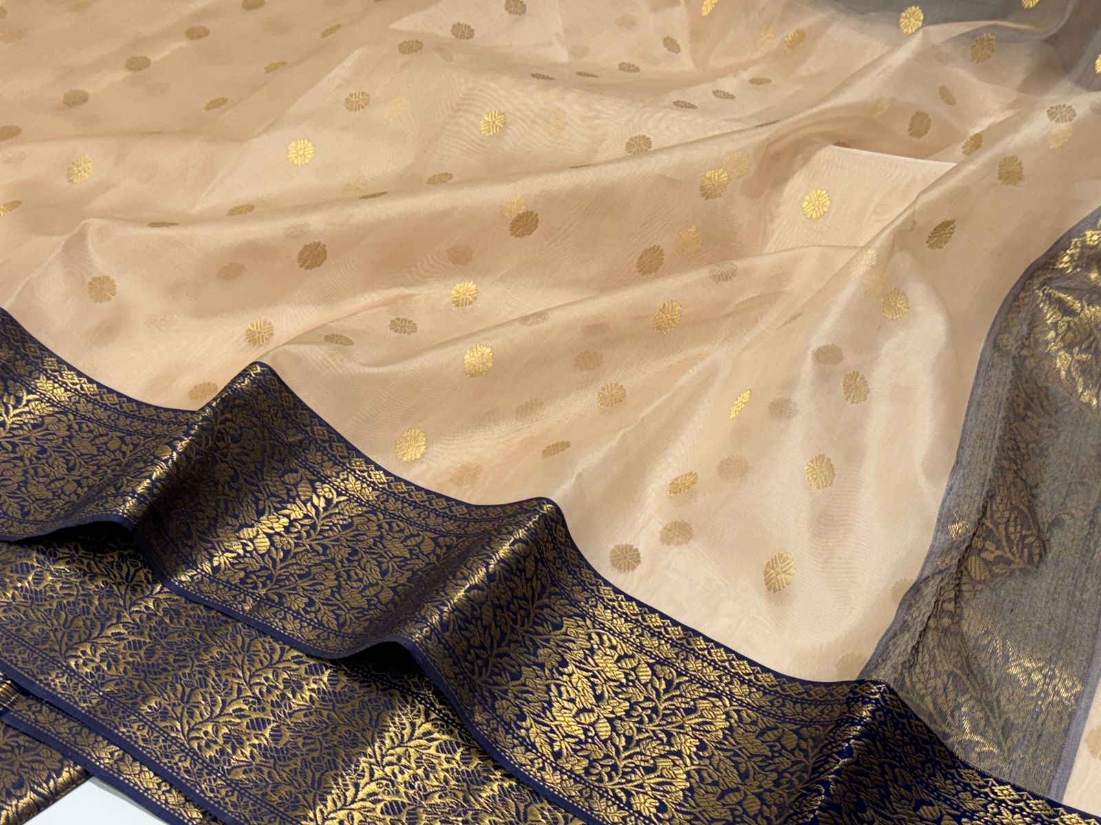Beige Chanderi Handloom Katan Silk Nakshi Saree