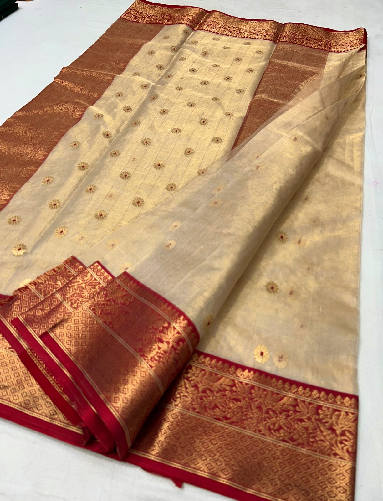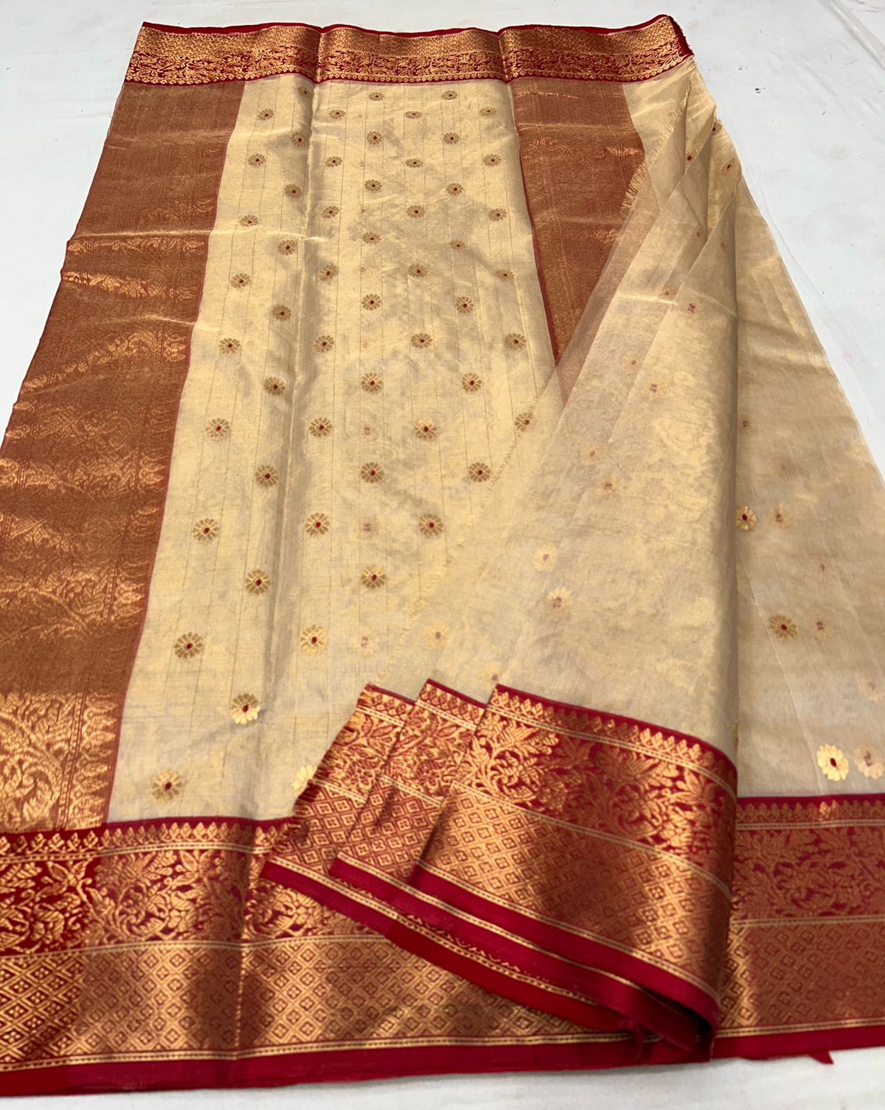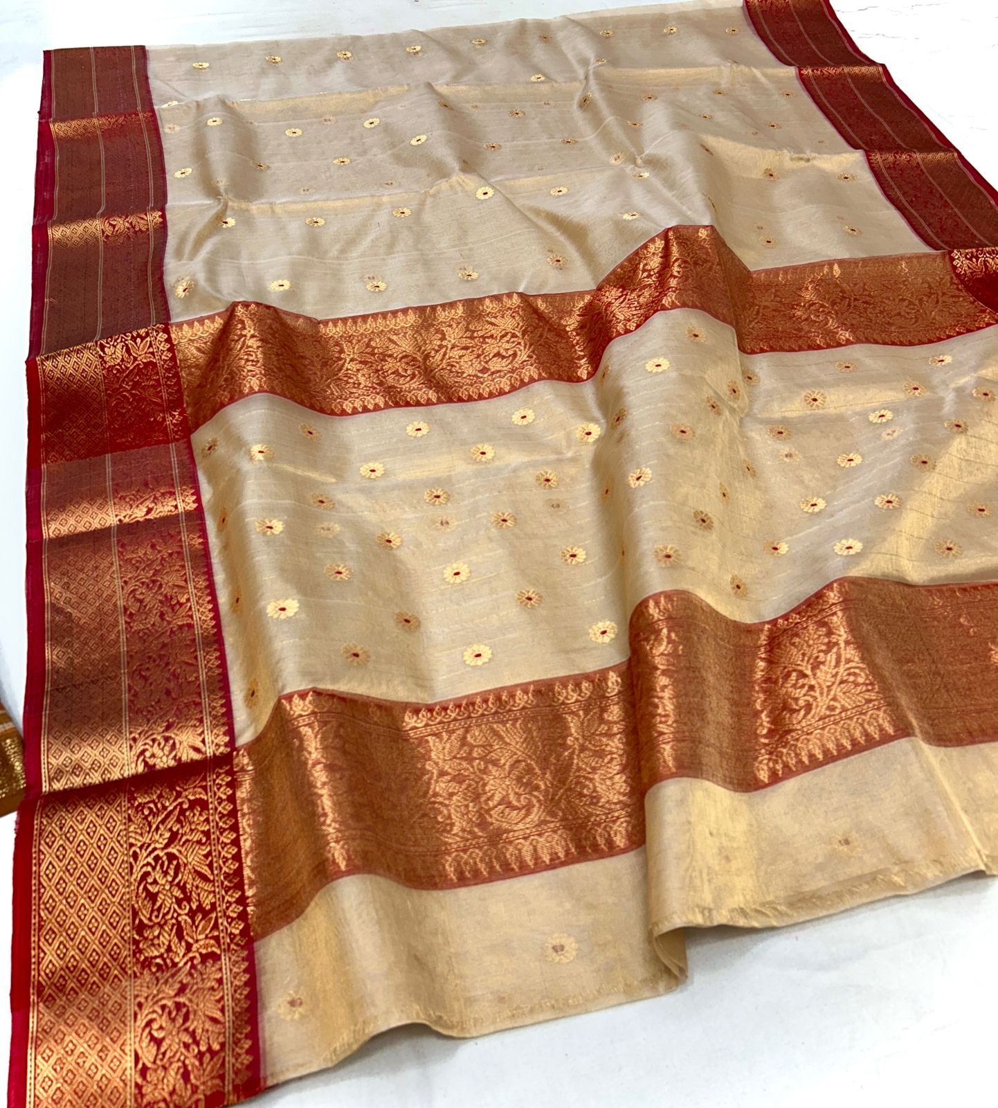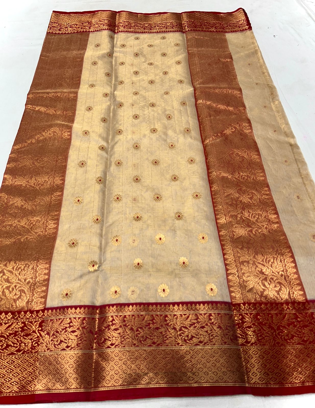 Beige Chanderi Handloom Katan Tissue Silk Saree