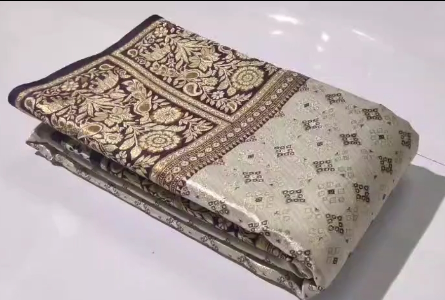 Beige Kanchipuram Handloom Tissue Brocade Meenakari Silk Saree