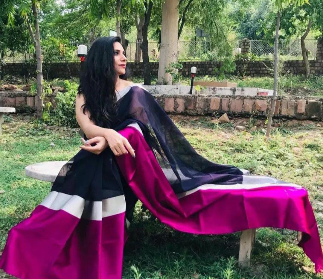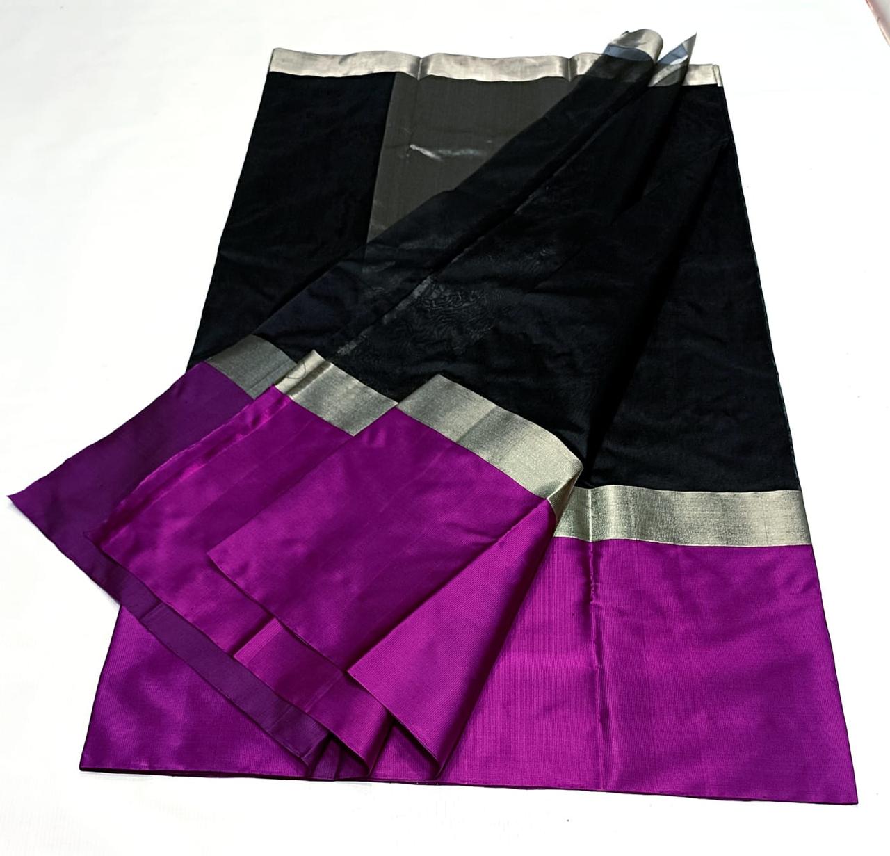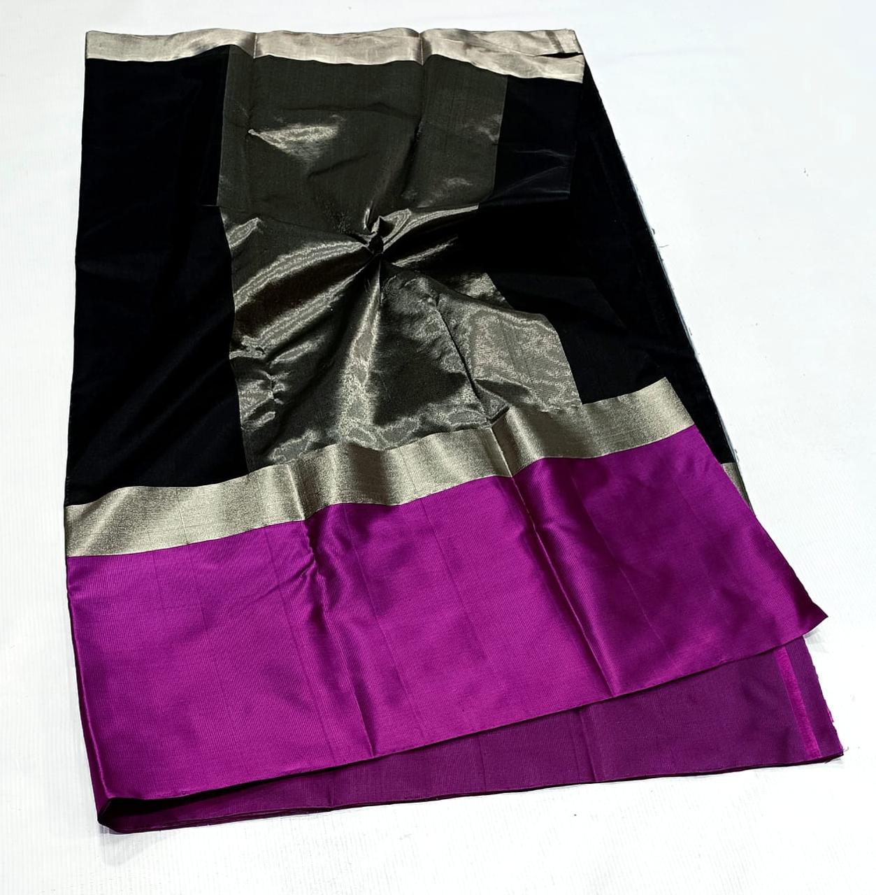 Black Chanderi Handloom Pattu Silk Mashru Borders Saree