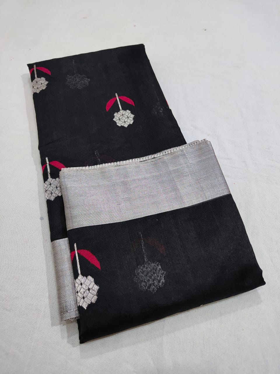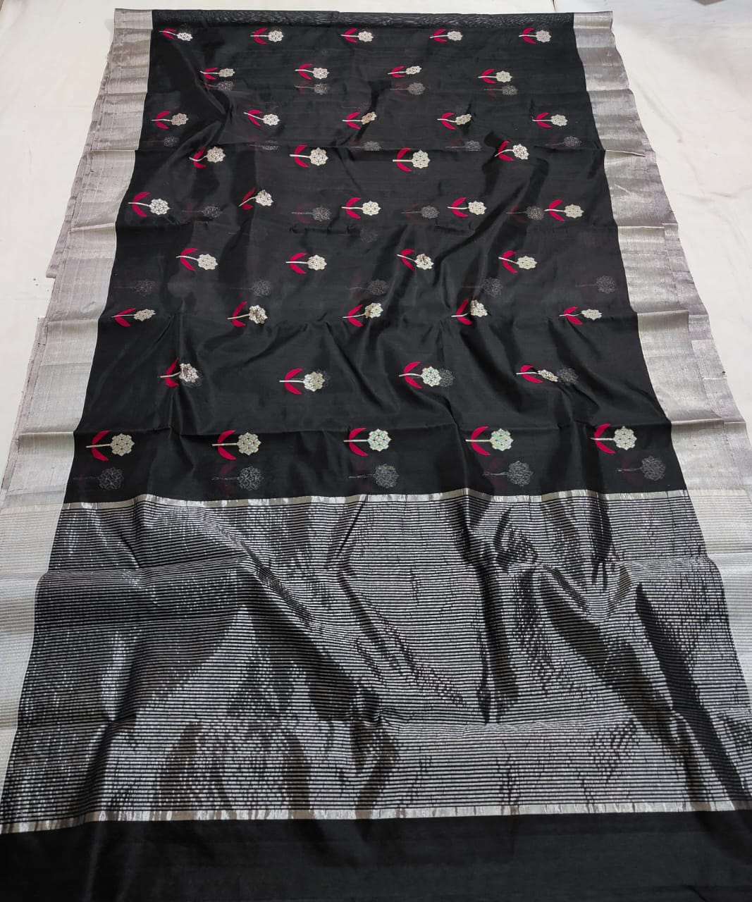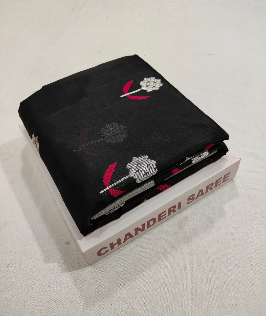 Black Chanderi Handloom Pattu Silk Eknal Buttas Saree