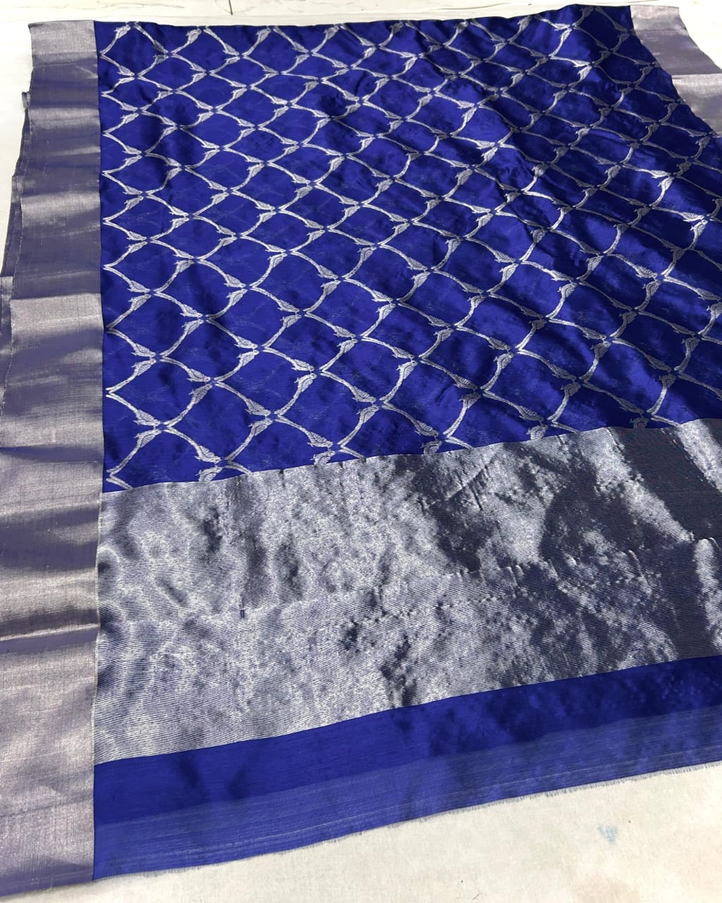 Royal Blue Chanderi Handloom Pattu Silk Handwork Saree