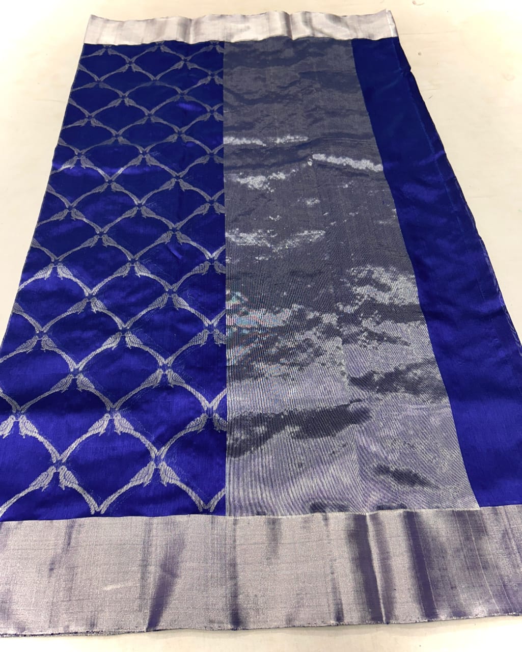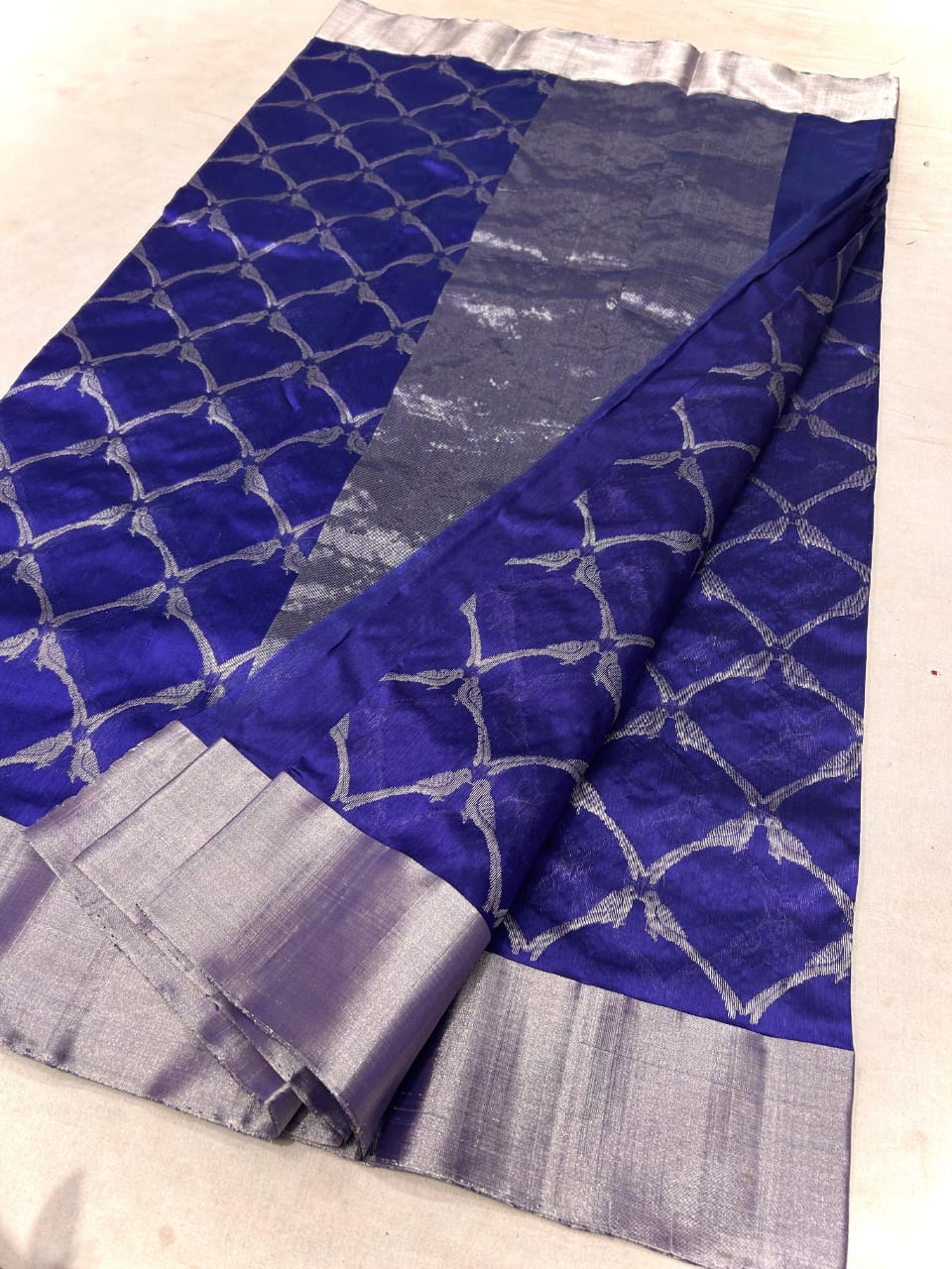 Dark Blue Chanderi Handloom Pattu Silk Sona Rupa Saree