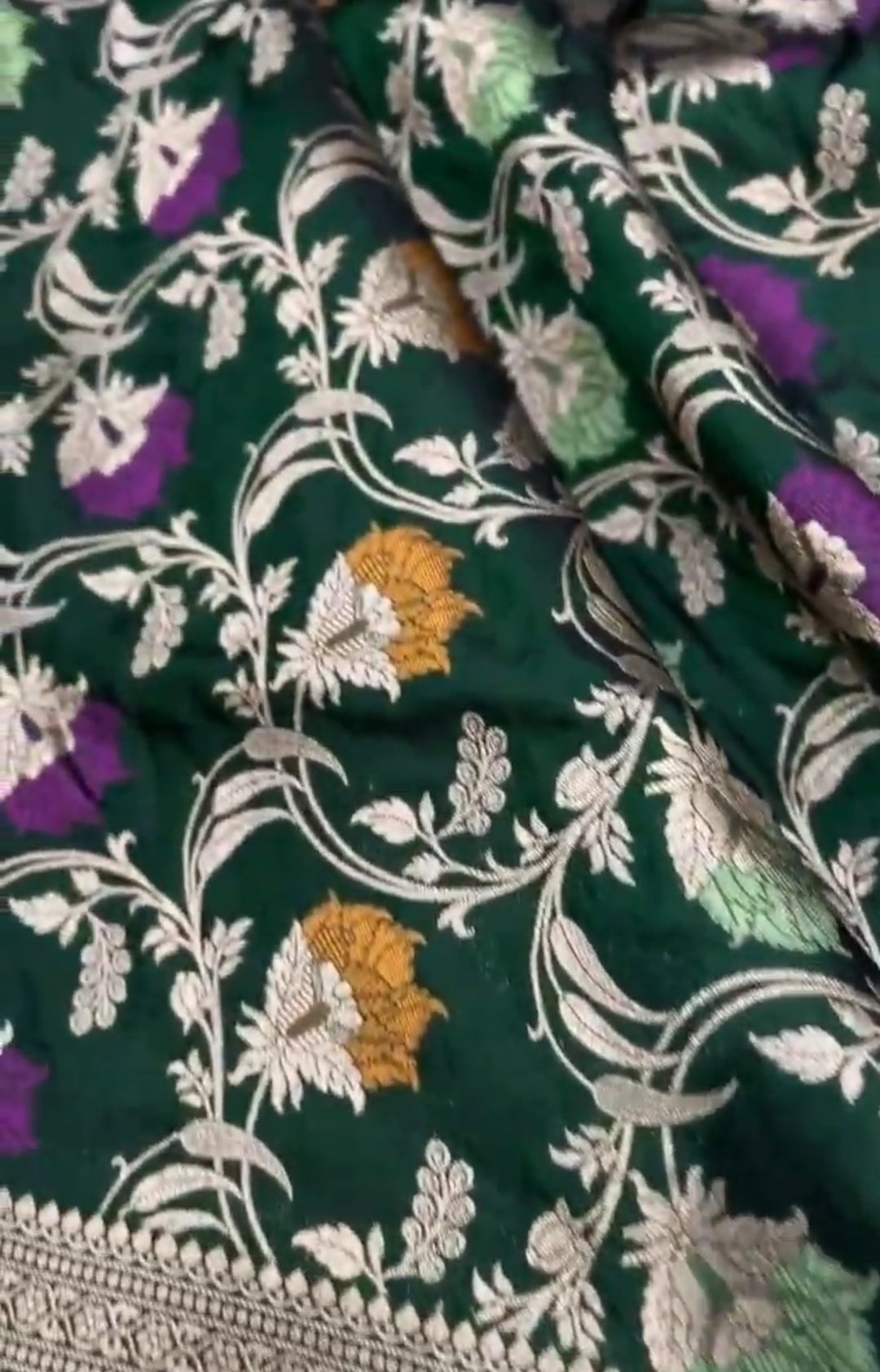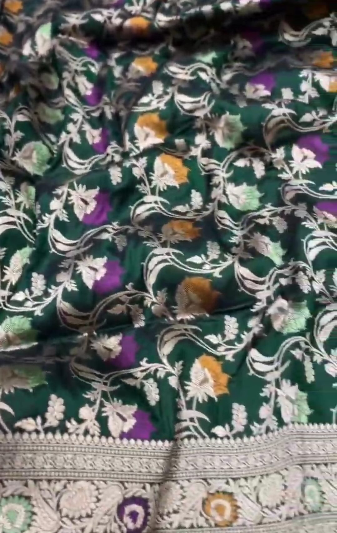 Bottle Green Banarasi Handloom Katan Silk Meenakari Saree