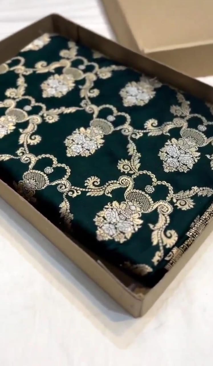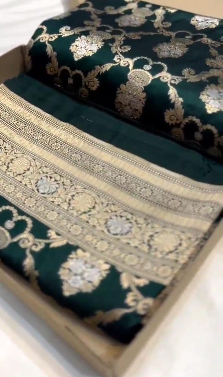 Bottle Green Banarasi Handloom Katan Silk Meenakari Saree