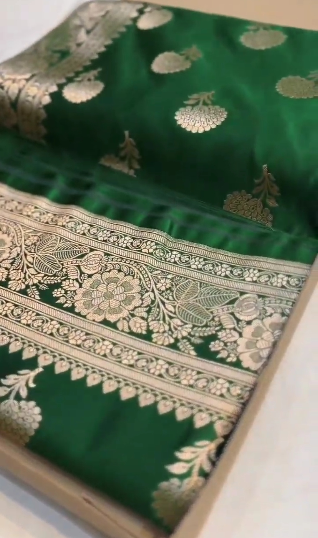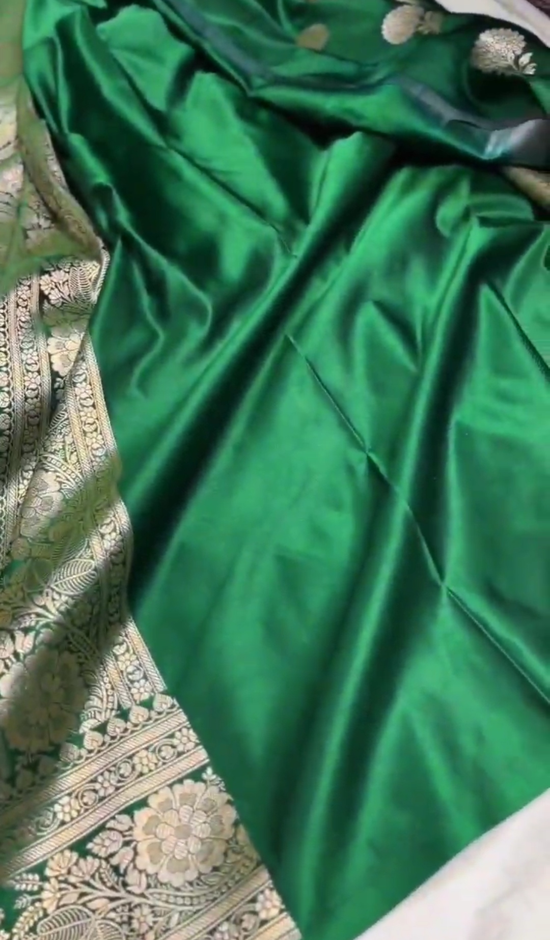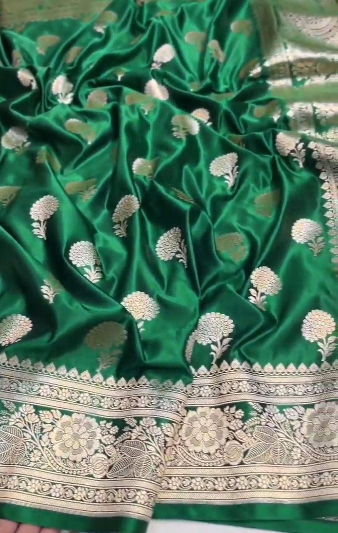 Bottle Green Banarasi Mashru Soft Silk Saree