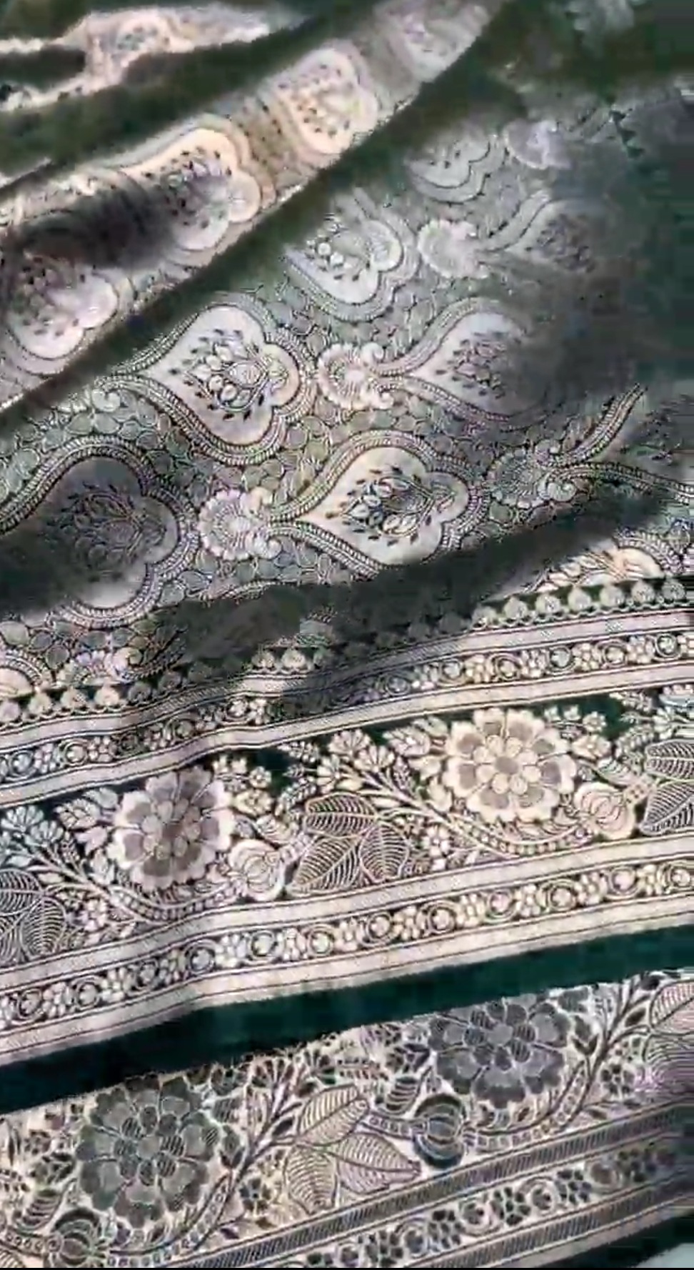 Bottle Green Banarasi Mashru Soft Silk Saree