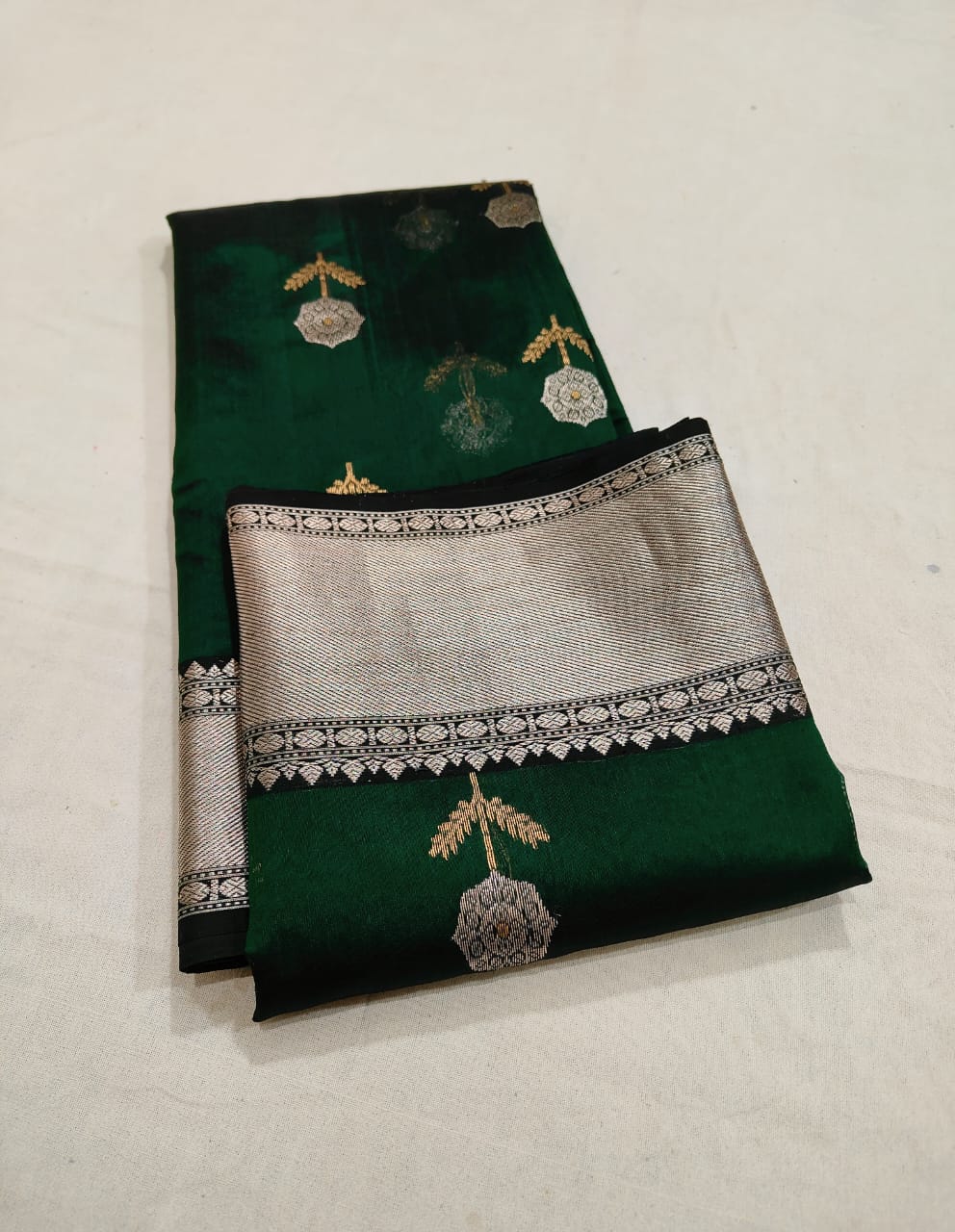 Bottle Green Chanderi Handloom Pattu Silk Meenakari Saree