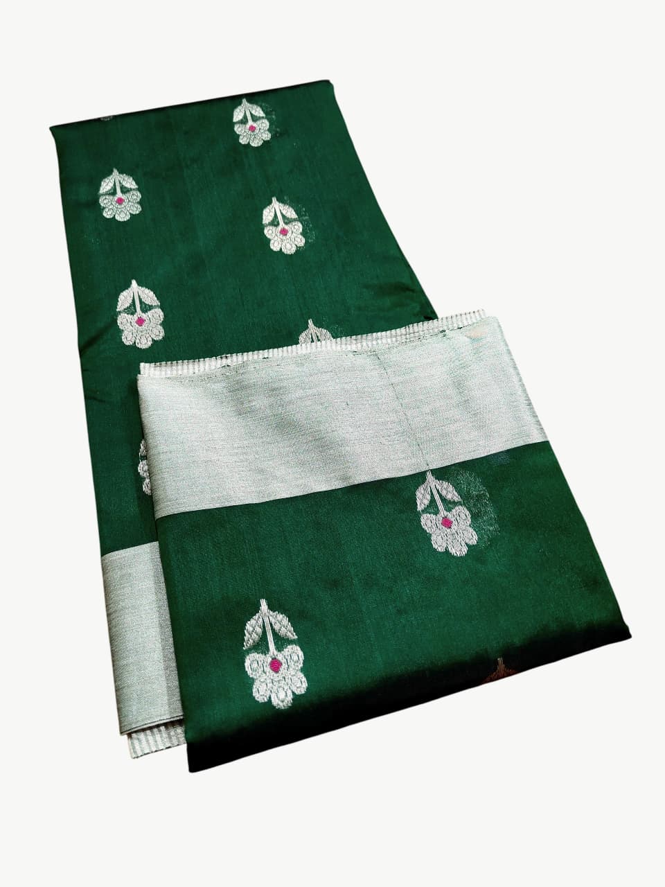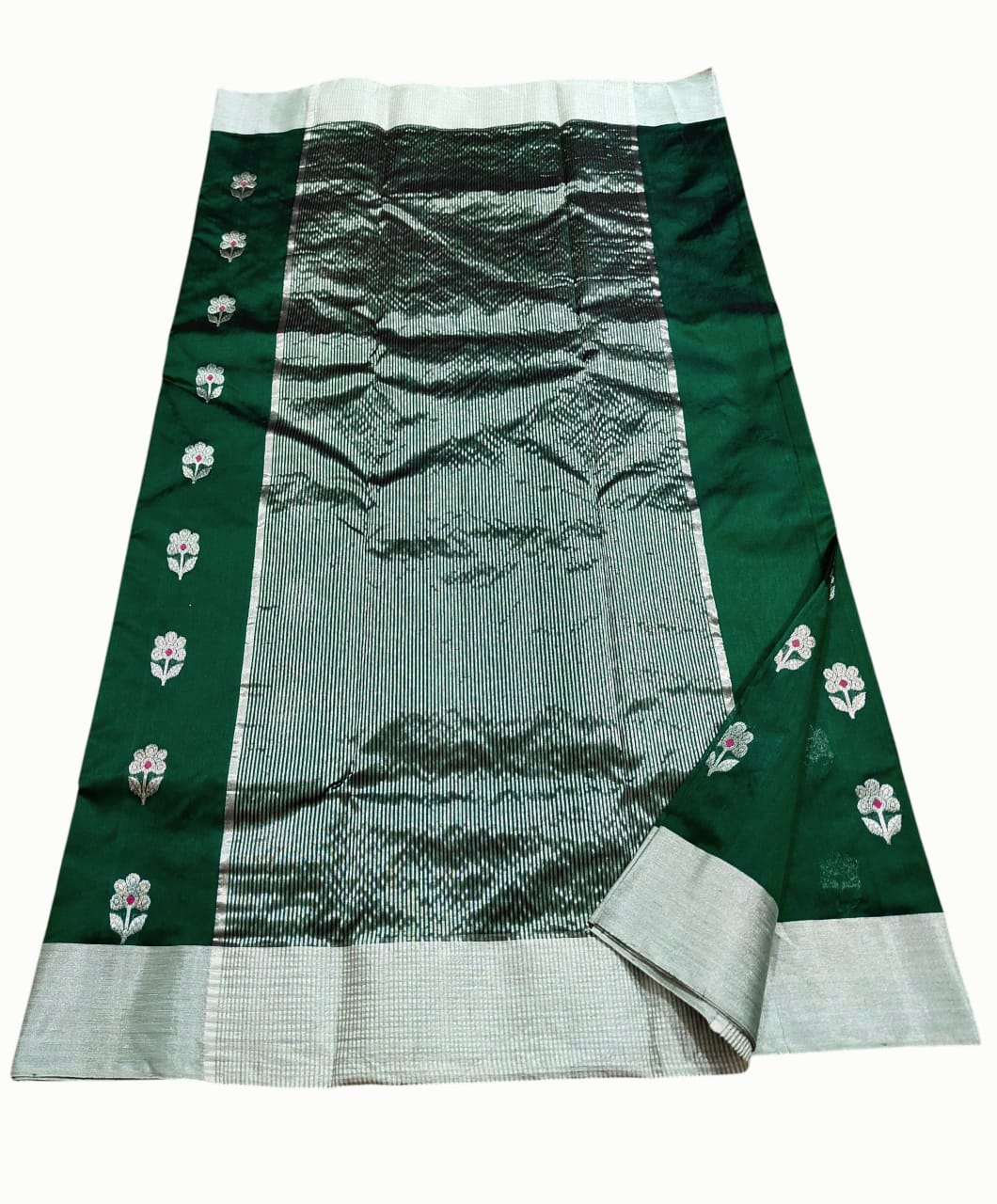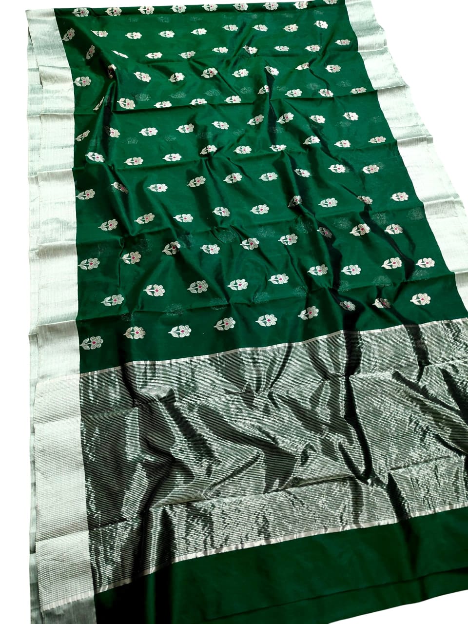 Bottle Green Chanderi Handloom Pattu Silk Meenakari Saree