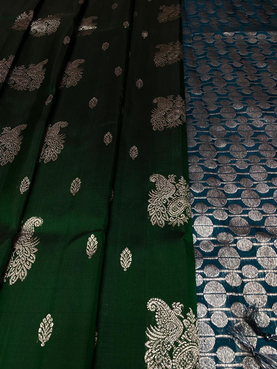 Bottle Green Venkatagiri Handloom Pattu Silk Saree