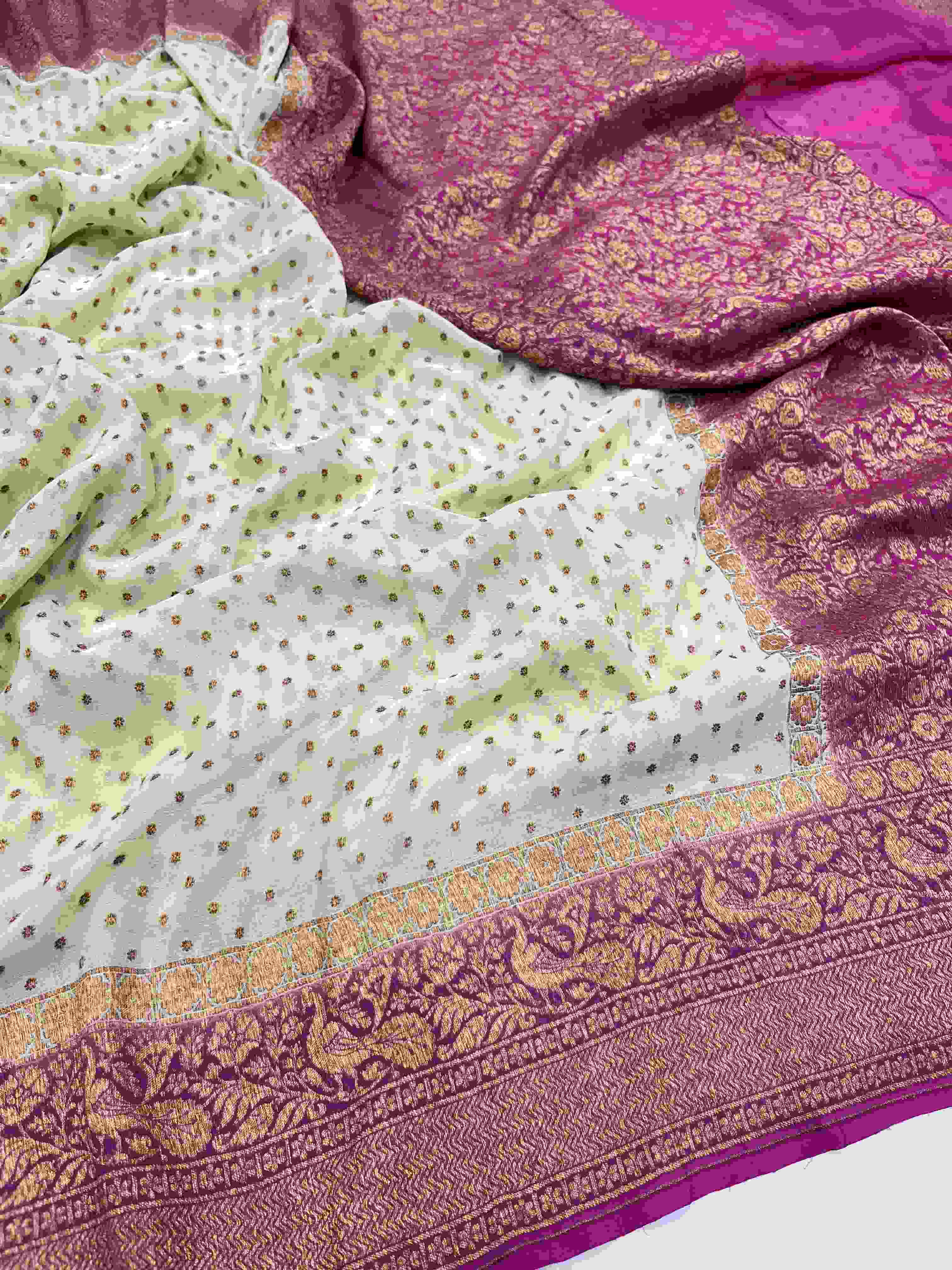 Magenta Banarasi Handloom Gold Zari Bandhani Georgette Silk Saree