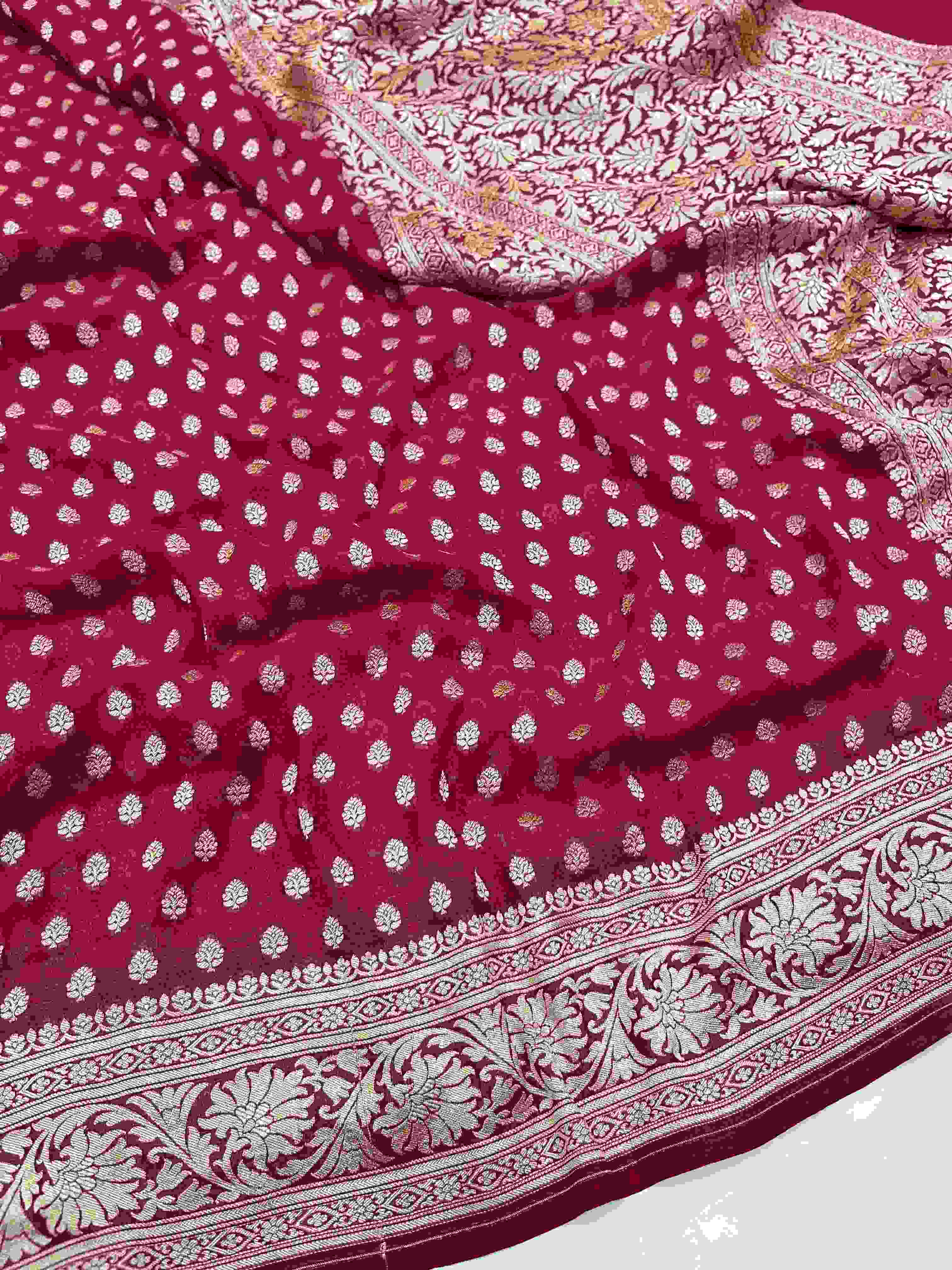 Hot Pink Banarasi Handloom Exquisite Rangkaat Georgette Silk Saree