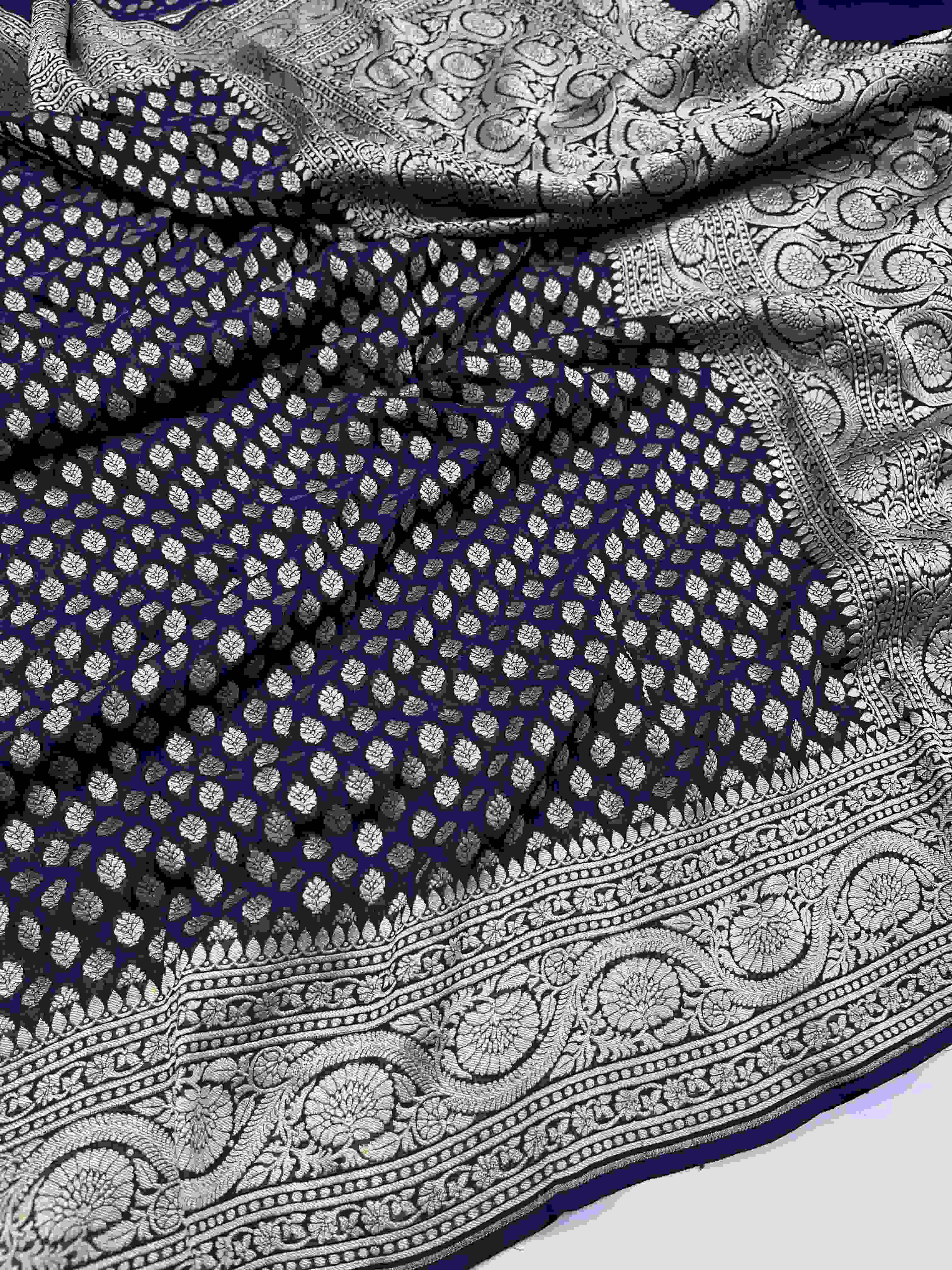 Midnight Blue Banarasi Handloom Water Zari Georgette Silk Saree