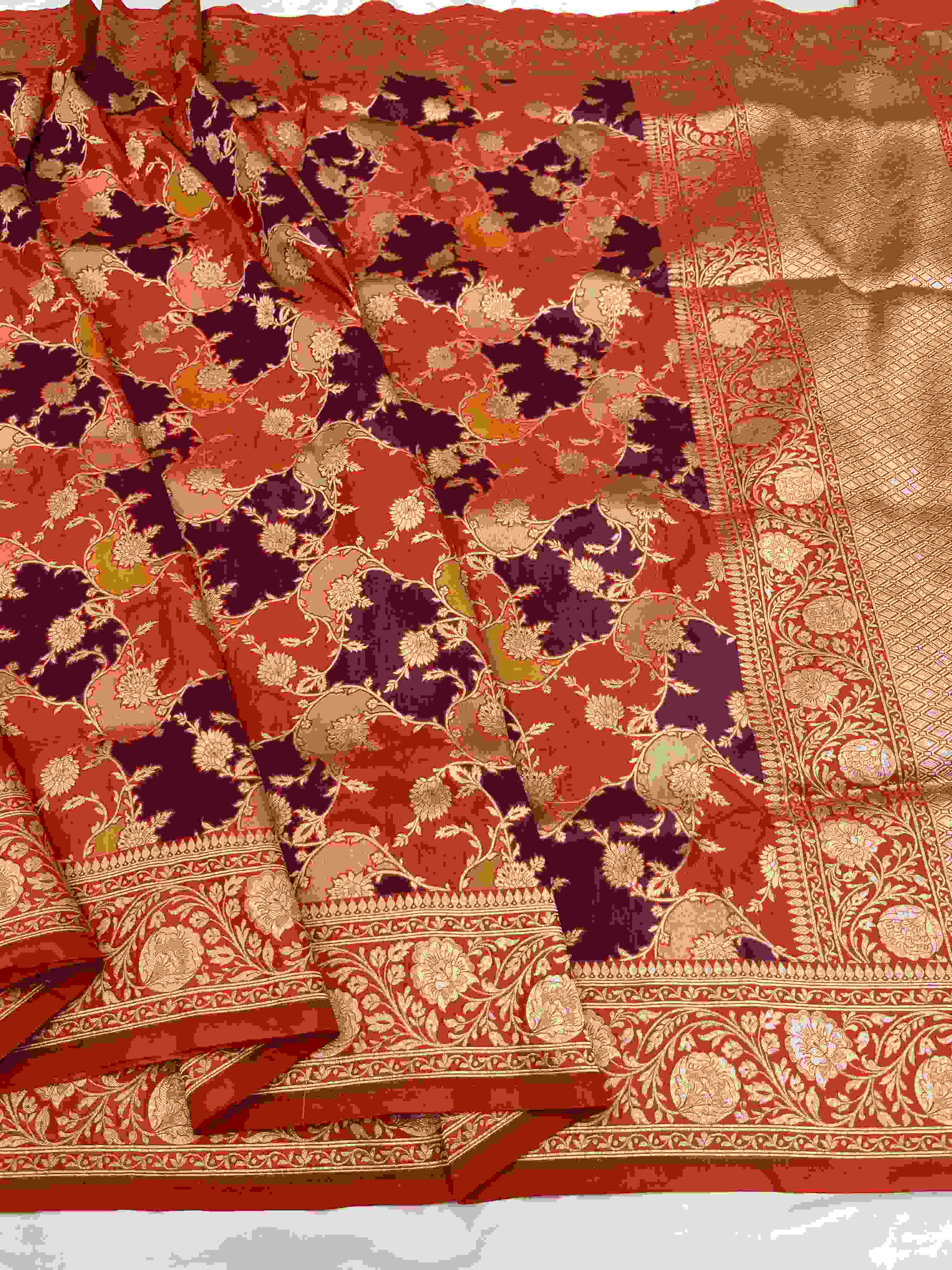 Dual Tone Red Banarasi Handloom Katan Silk Meenakari Saree