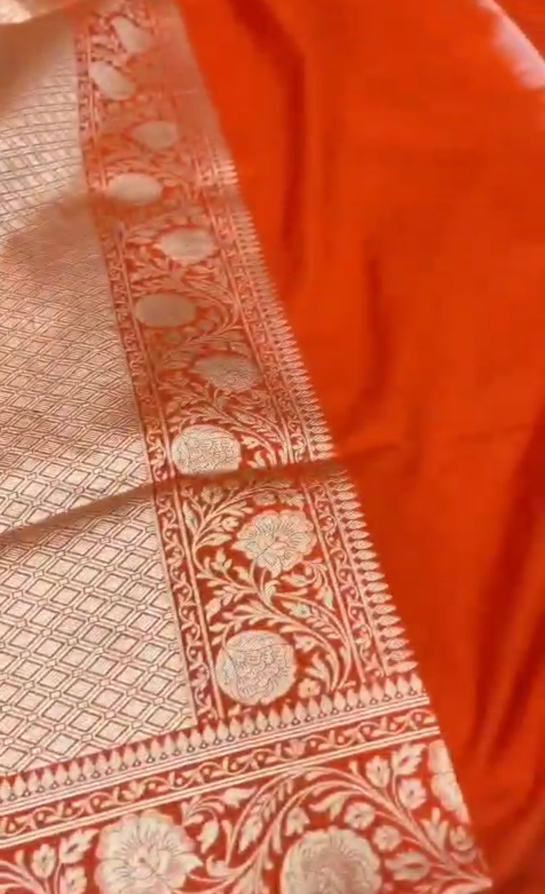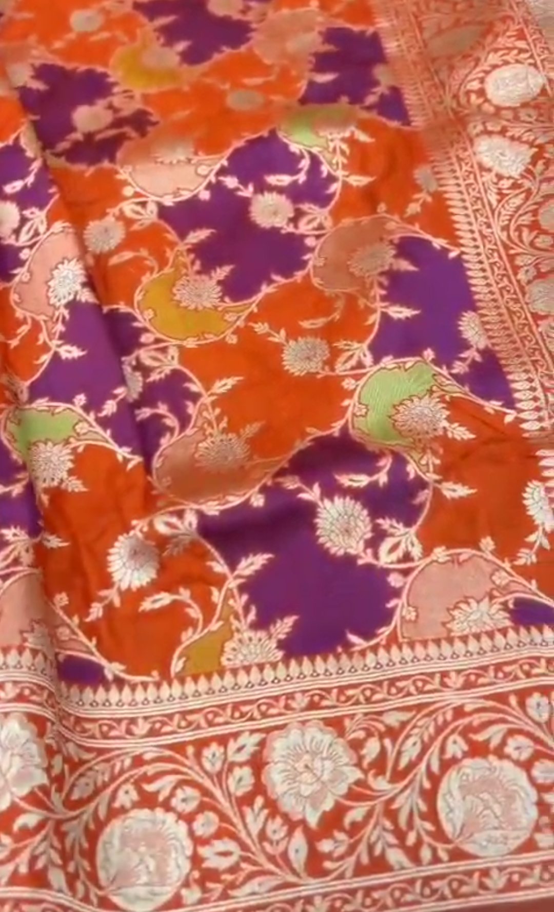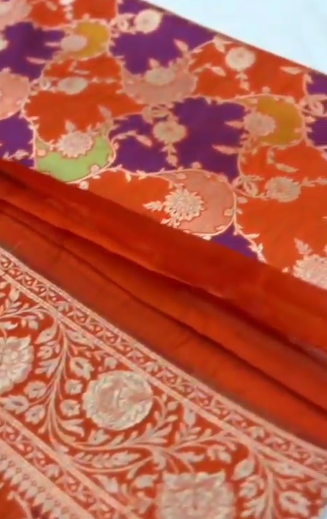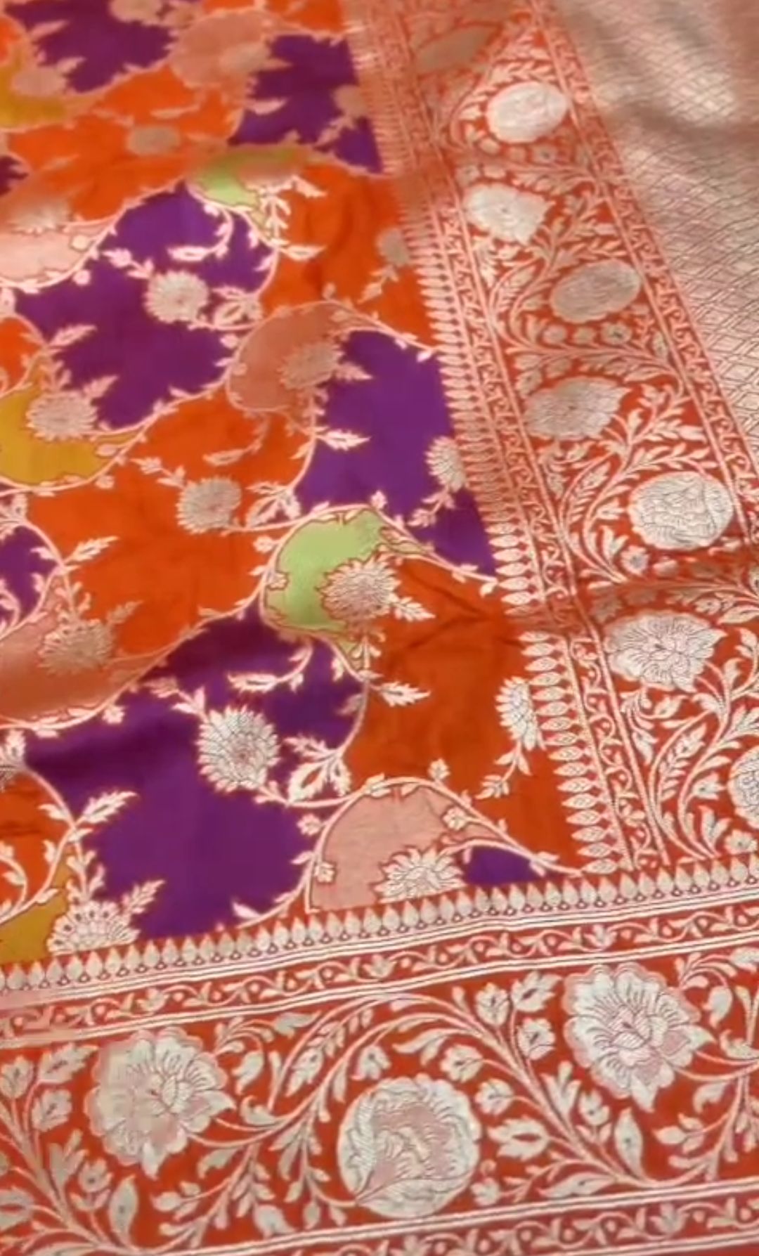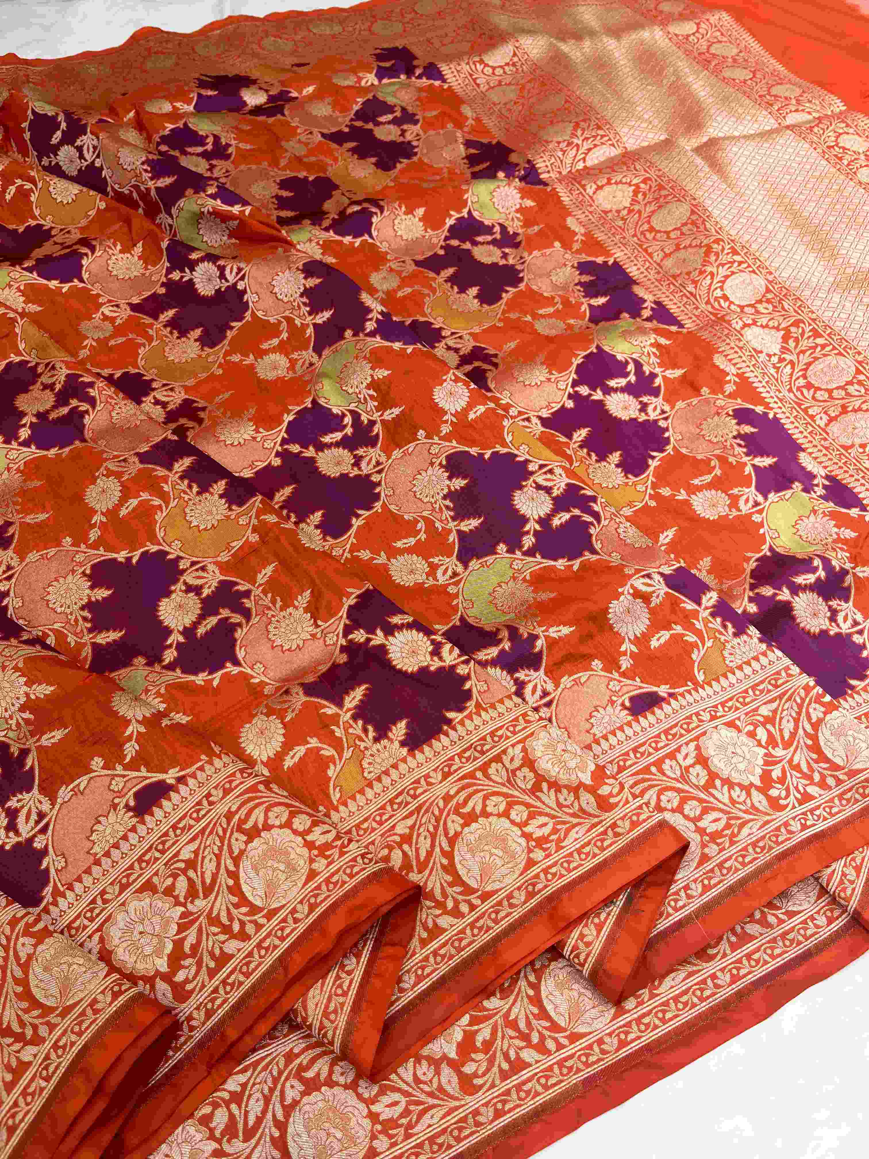 Orange Banarasi Handloom Katan Silk Meenakari Saree