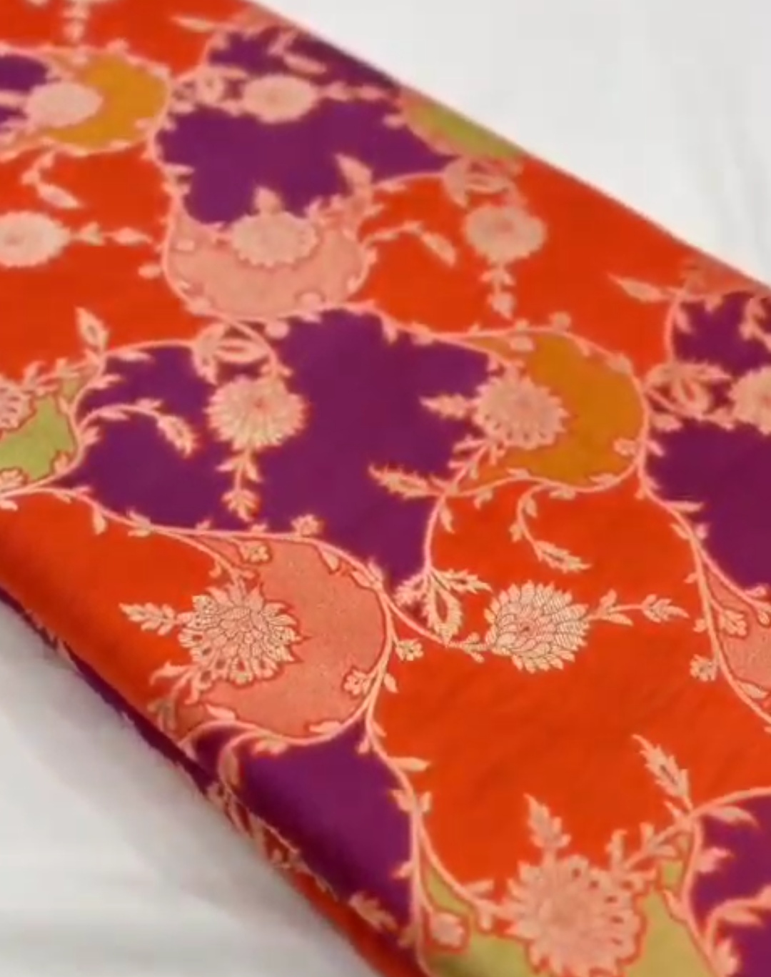 Dual Tone Orange Banarasi Handloom Katan Silk Meenakari Saree