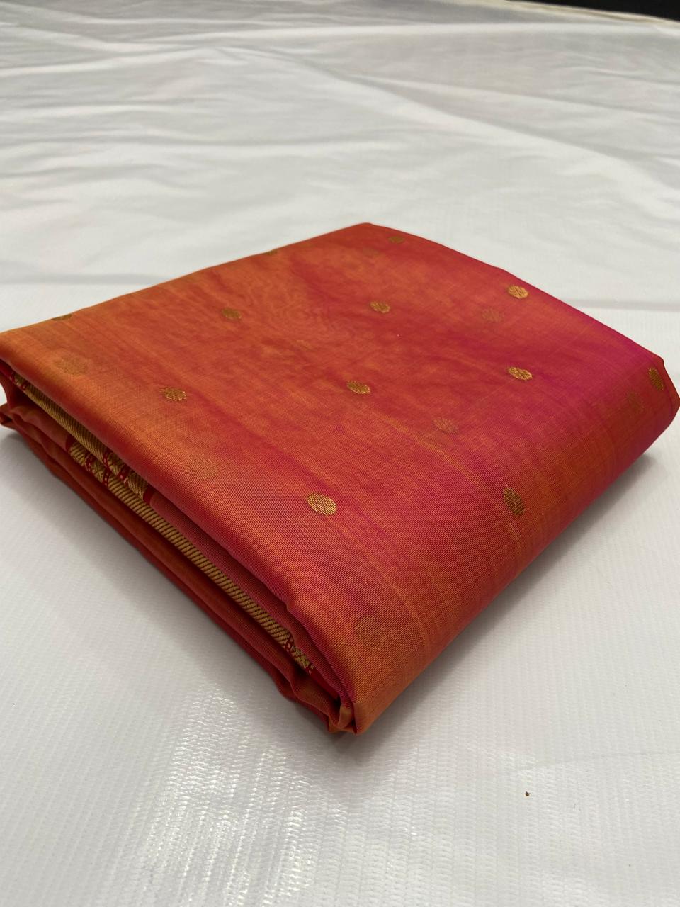 Orange Chanderi Handloom Katan Silk Nakshi Saree