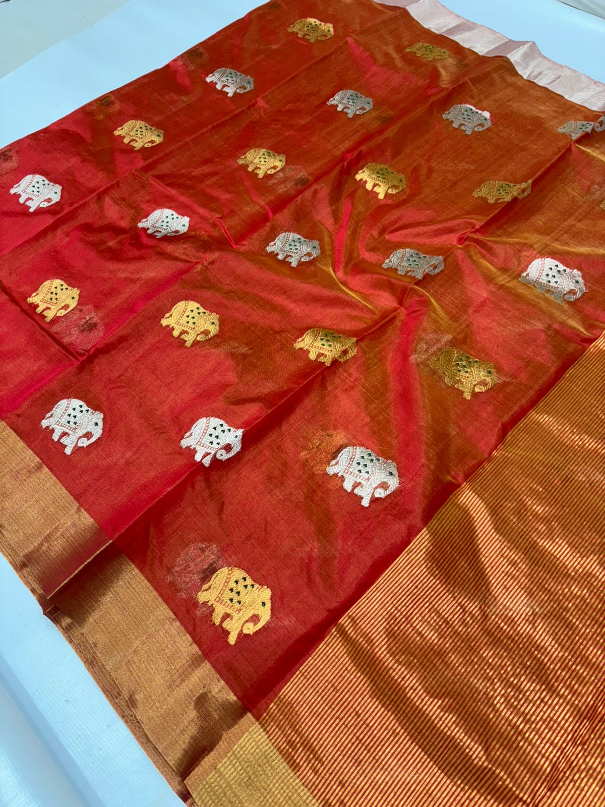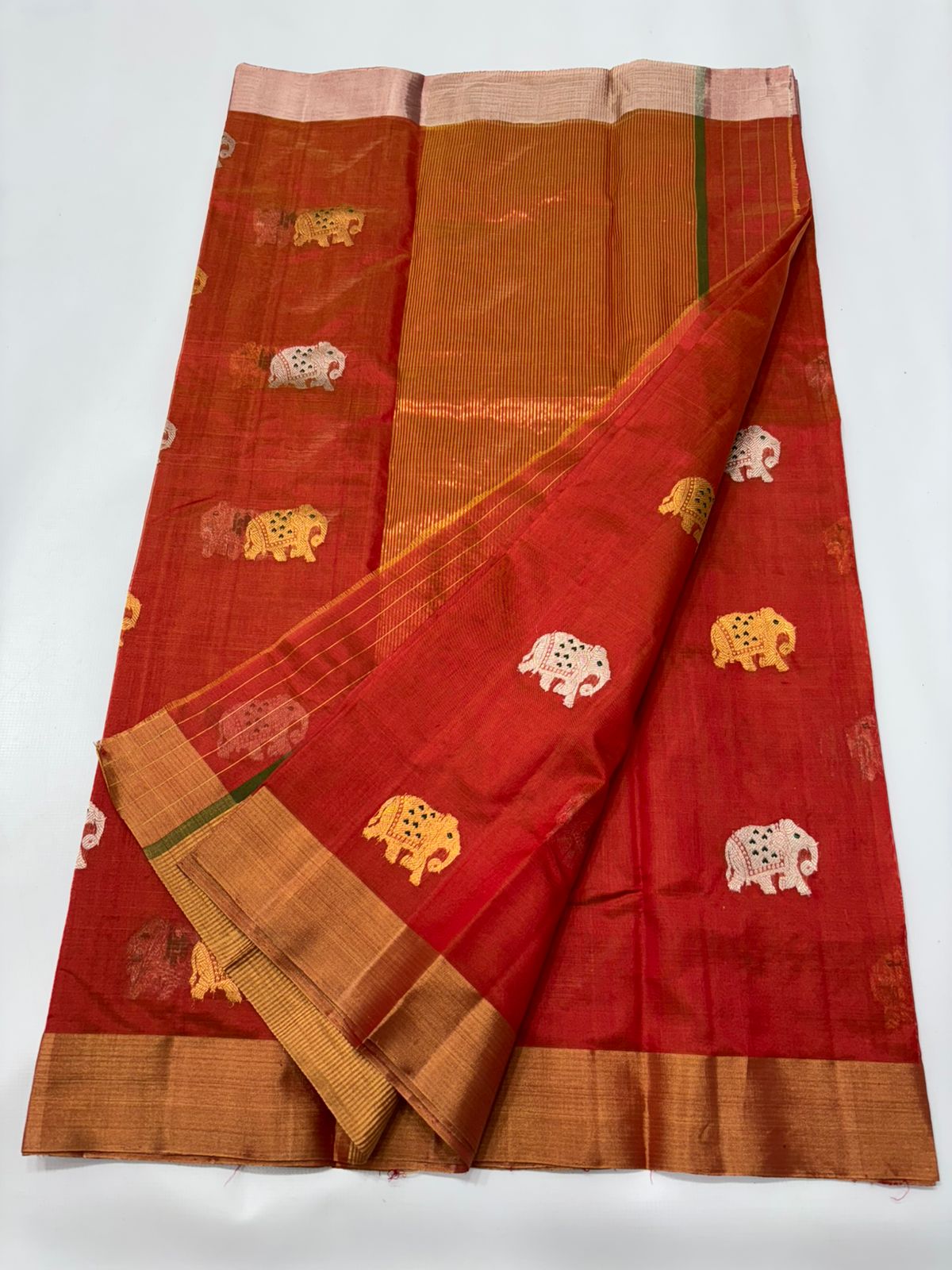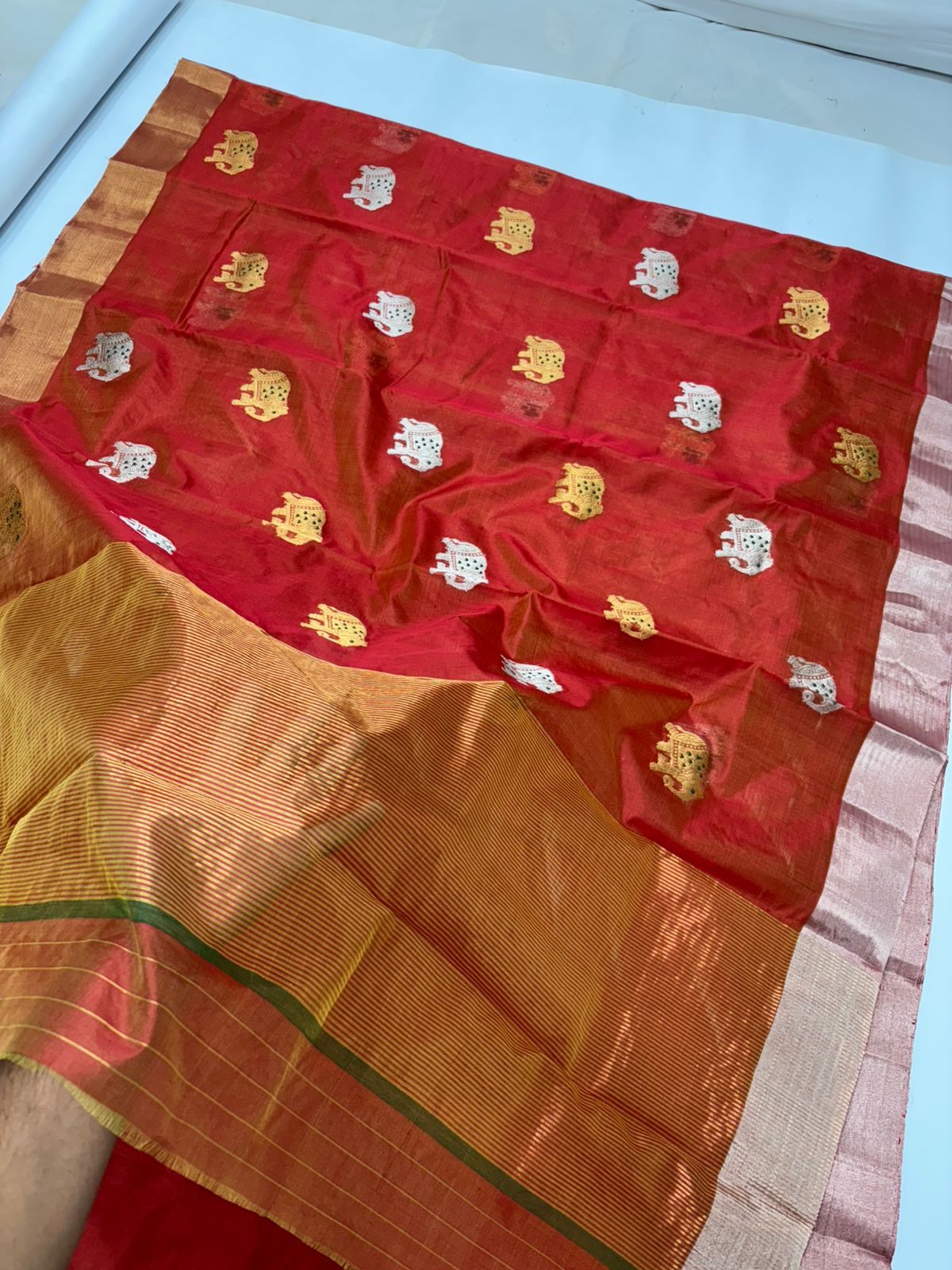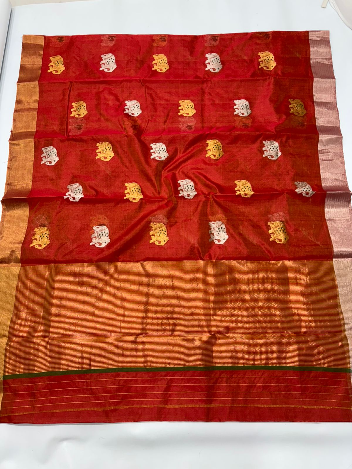 Chilly Red Chanderi Handloom Pattu Silk Eknal Buttas Saree