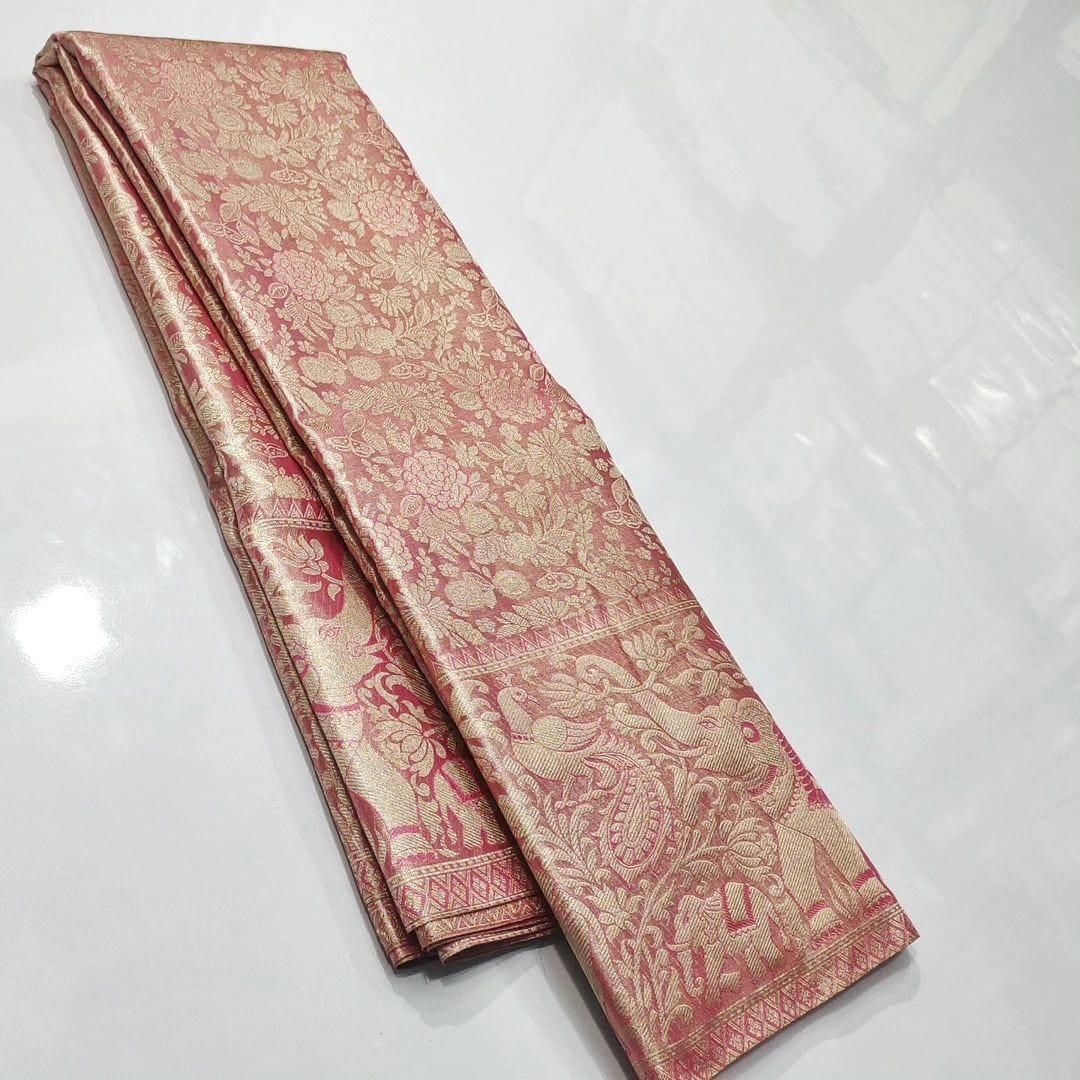 Onion Pink Kanchipuram Handloom Tissue Brocade Meenakari Silk Saree