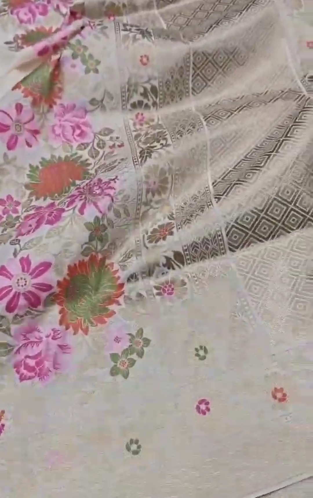 Cream Banarasi Semi Katan Silk Tilfi Meenakari Saree