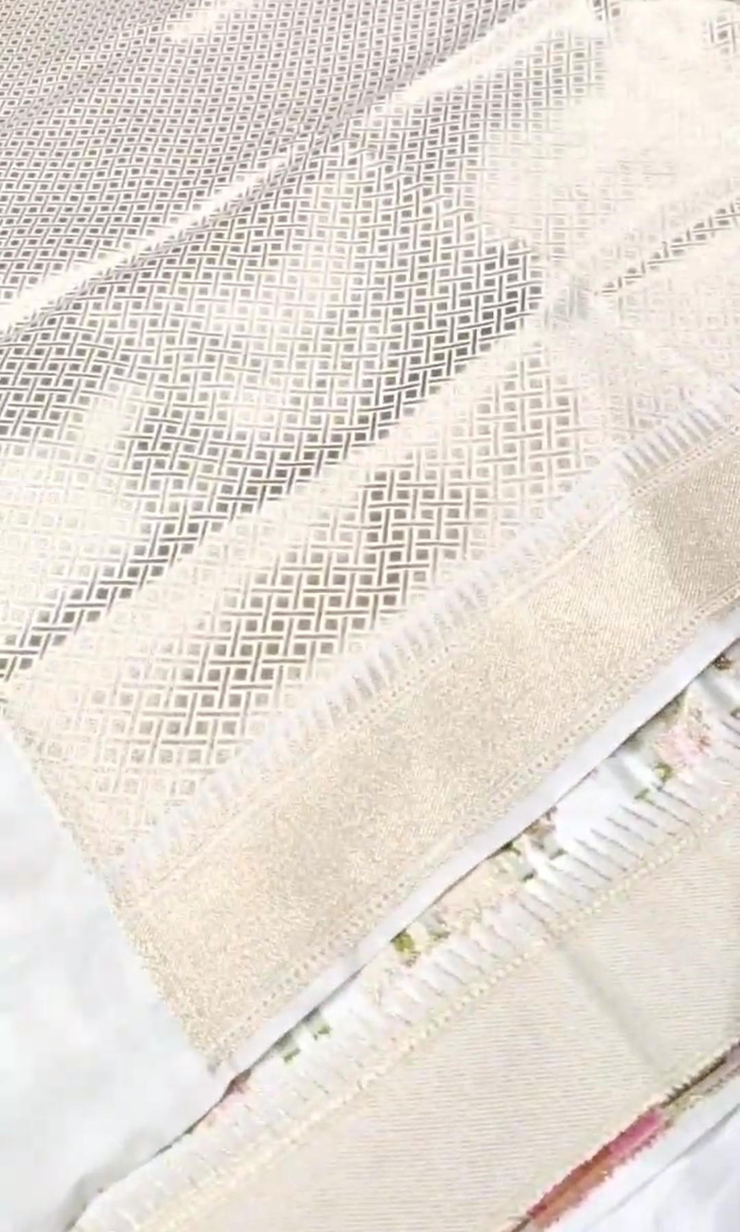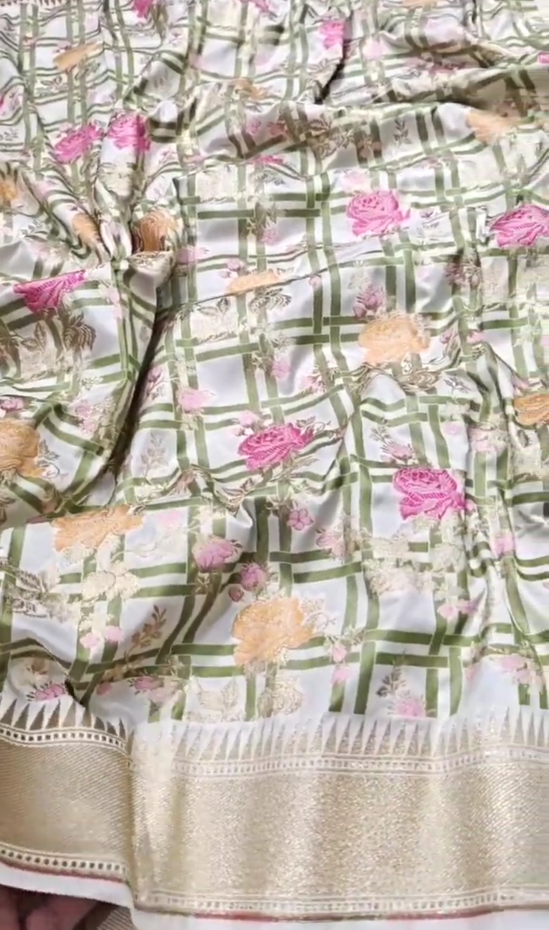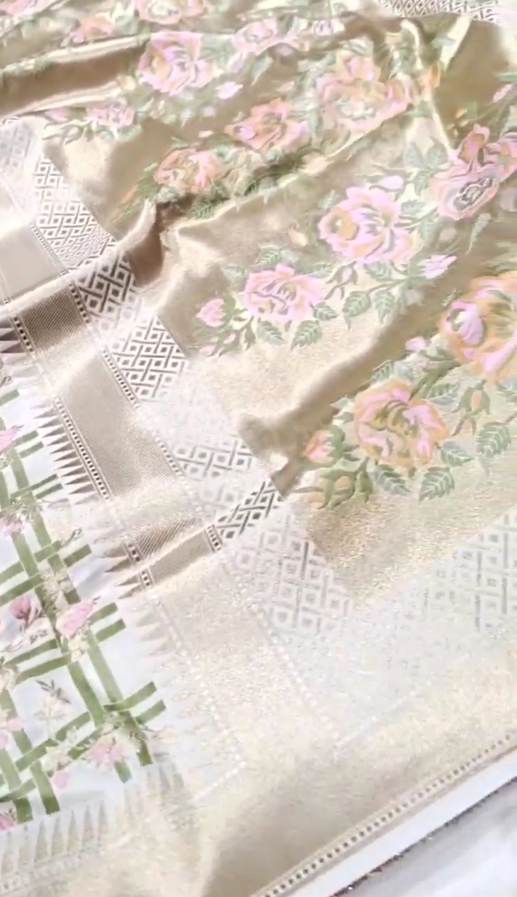 Cream Banarasi Soft Katan Silk Tilfi Meenakari Saree
