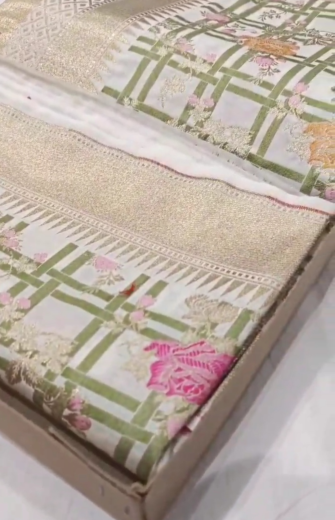 Green Banarasi Semi Katan Silk Tanchoi Brocade Saree