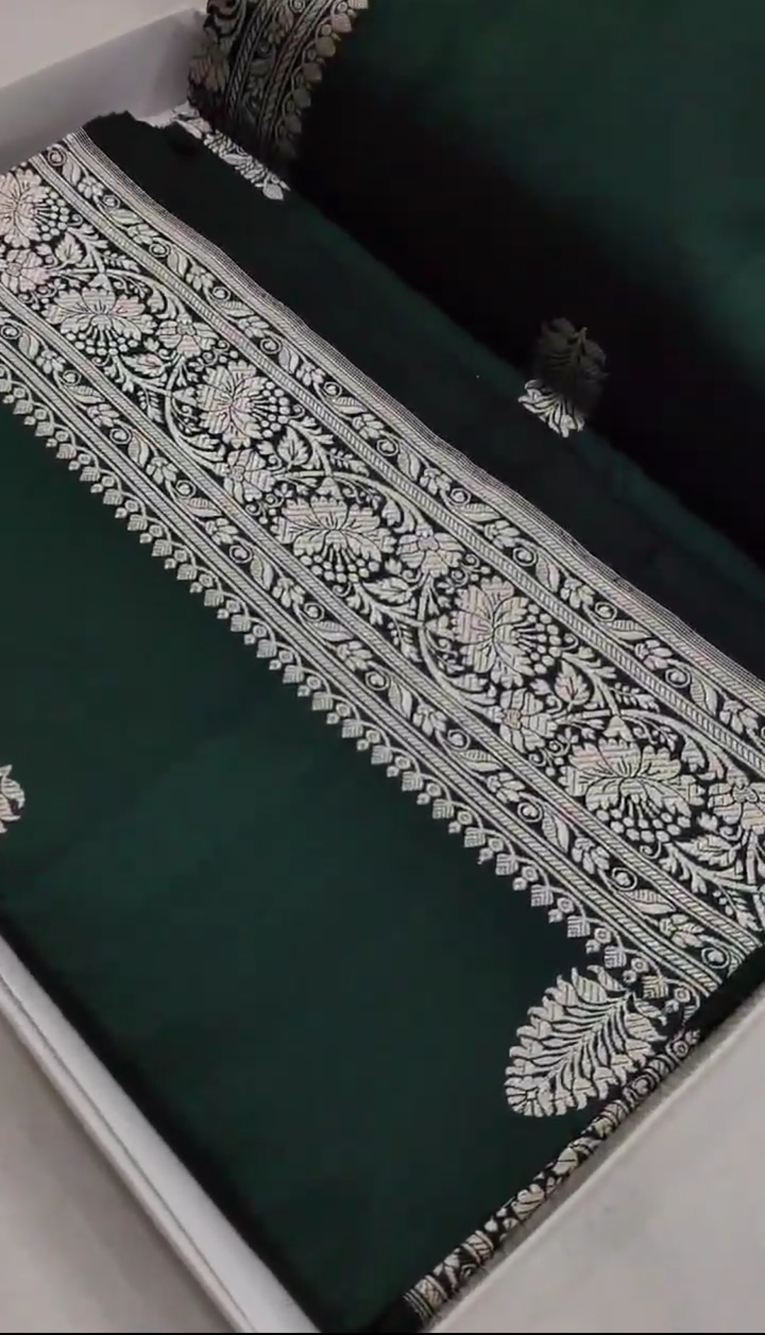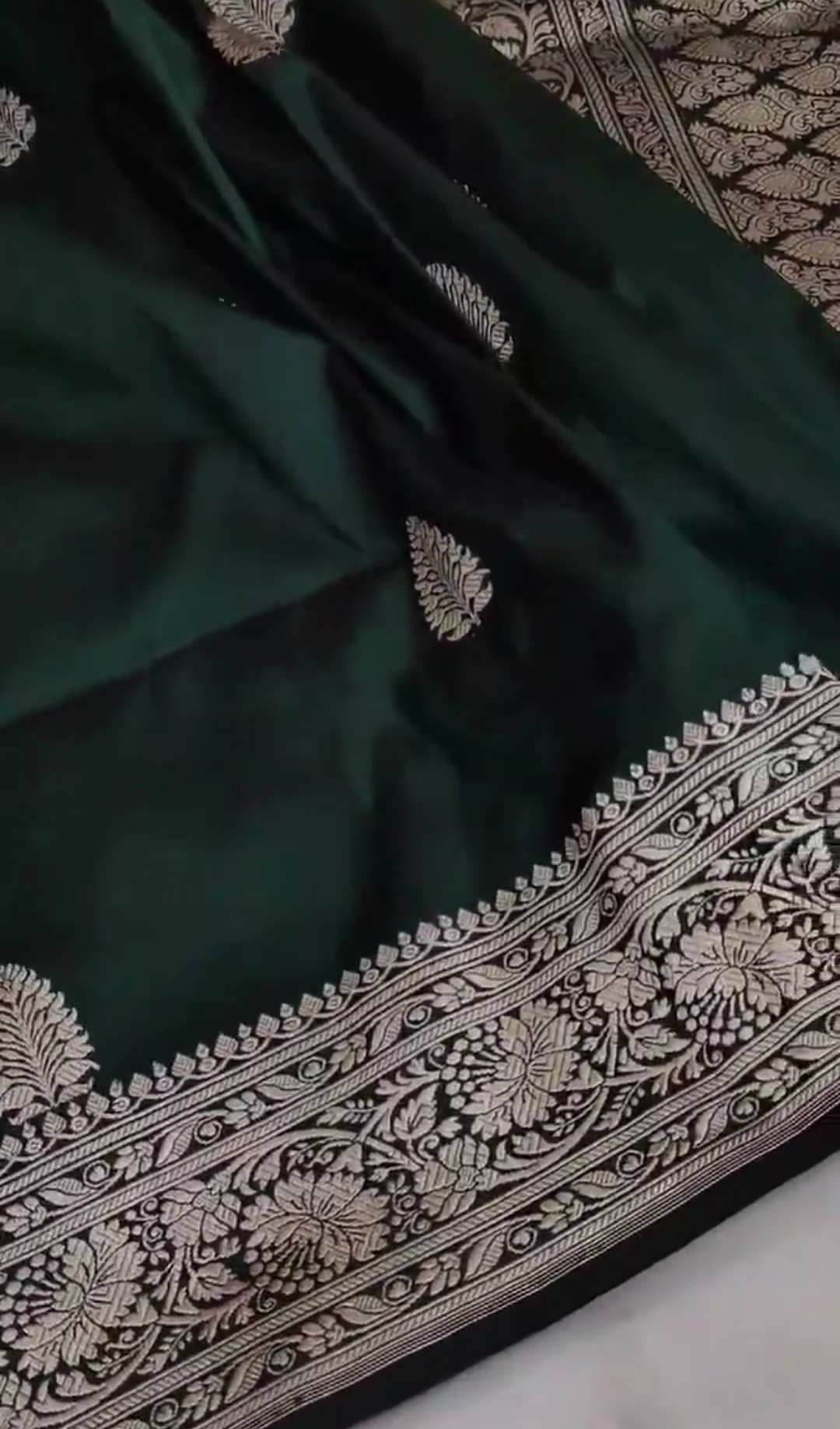 Bottle Green Banarasi Handloom Katan Silk Meenakari Saree