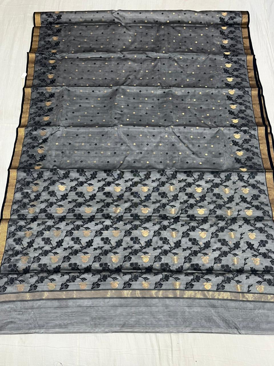 Dark Grey Chanderi Handloom Katan Silk Meenakari Saree
