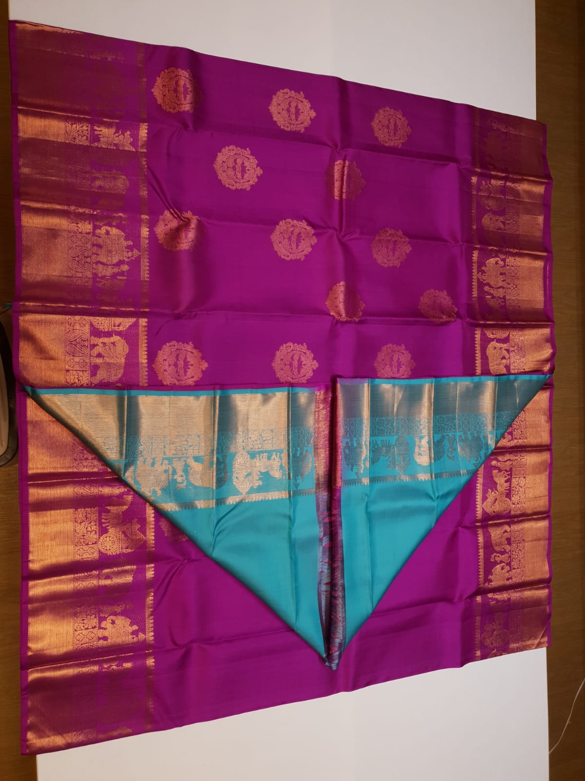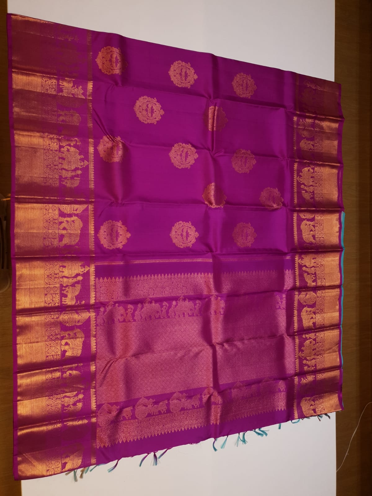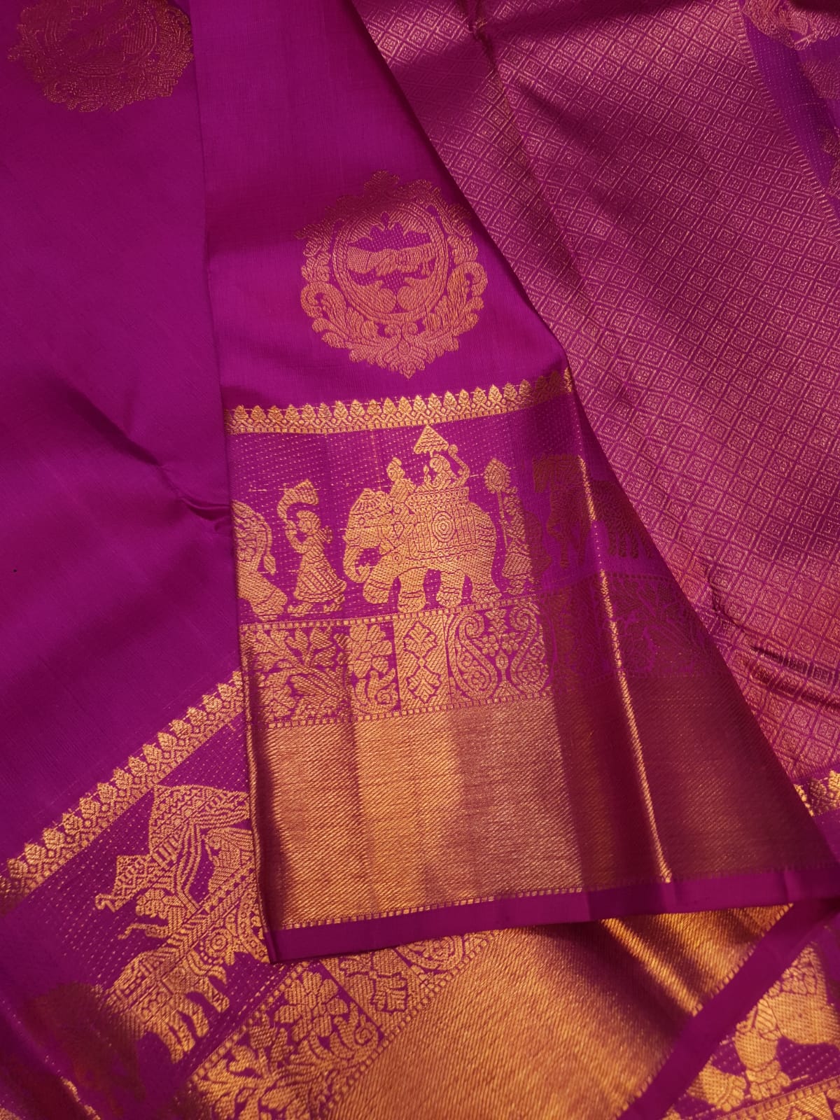 Purple Kanchipuram Handloom 2G Gold Pattu Silk Saree