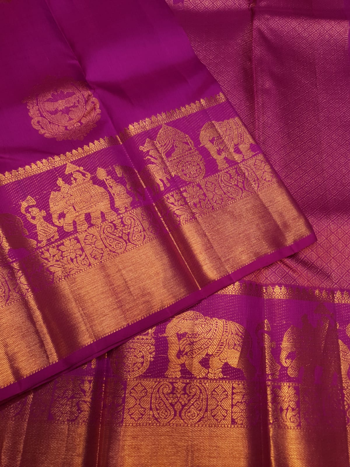 Magenta Kanchipuram Handloom 2G Gold Kalyana Pallakku Silk Saree