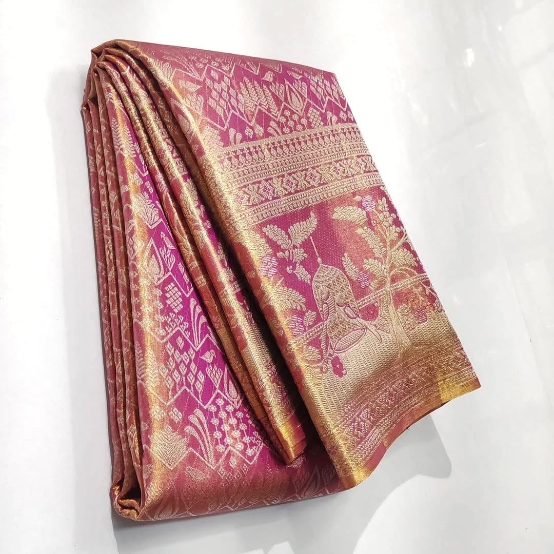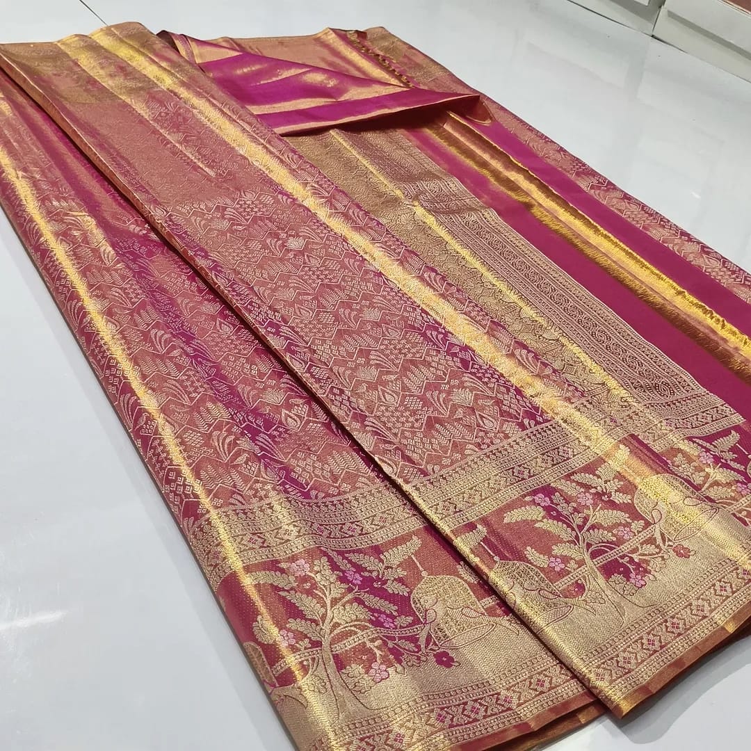 Onion Pink Kanchipuram Handloom Tissue Brocade Silk Saree
