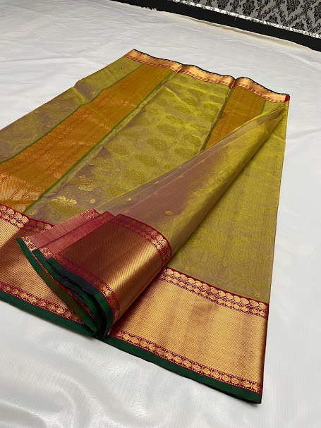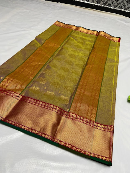 Dual Tone Bronze Chanderi Handloom Katan Silk Nakshi Saree