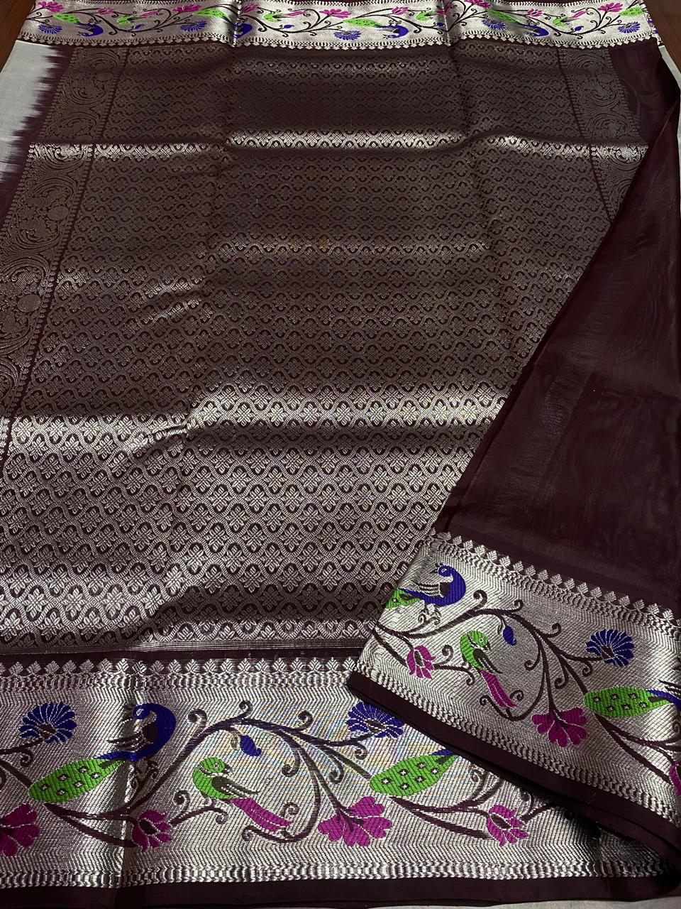 Dark Brown Venkatagiri Handloom Pattu Silk Saree