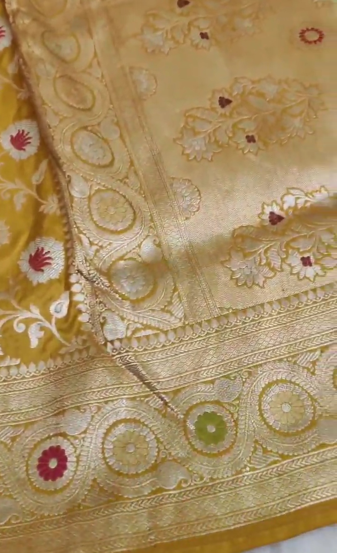 Golden Yellow Banarasi Handloom Katan Silk Meenakari Saree