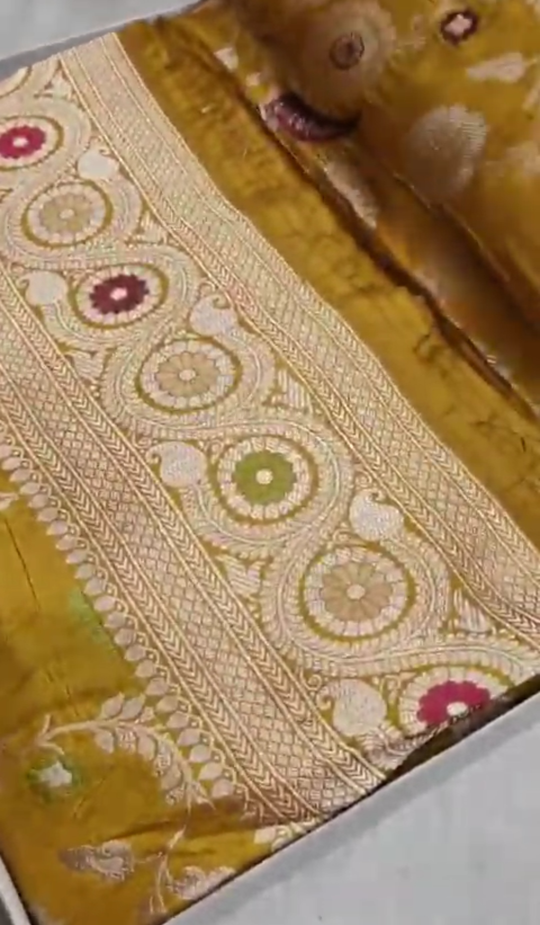Mustard Banarasi Handloom Katan Silk Rangkaat Meenakari Saree
