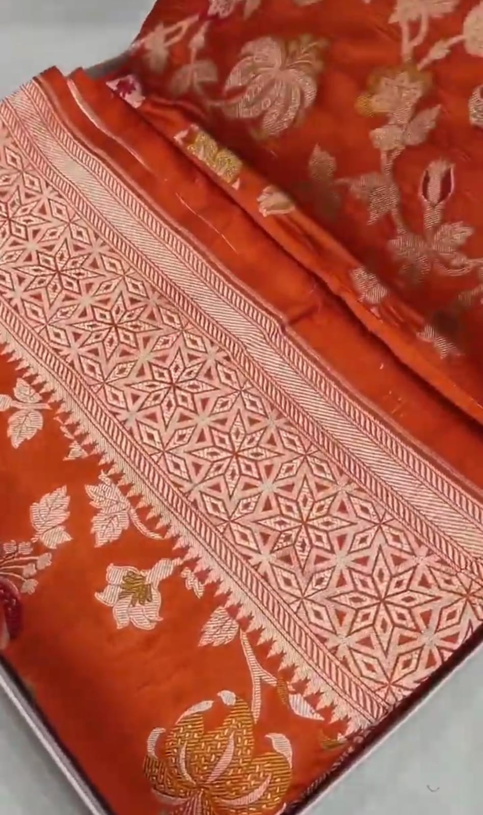 Orange Banarasi Handloom Katan Silk Meenakari Saree