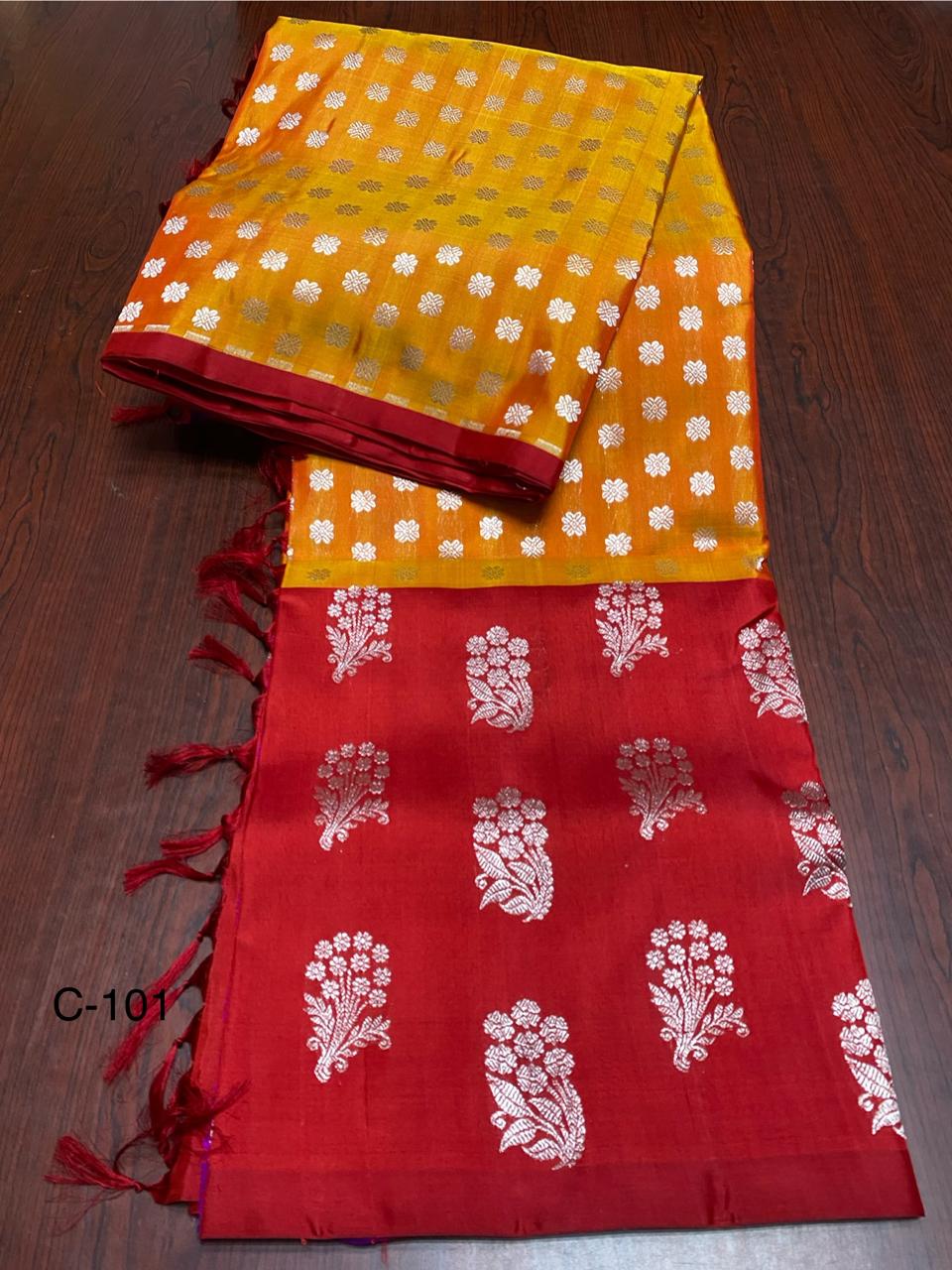 Dual Tone Orange Venkatagiri Handloom Pattu Silk Saree
