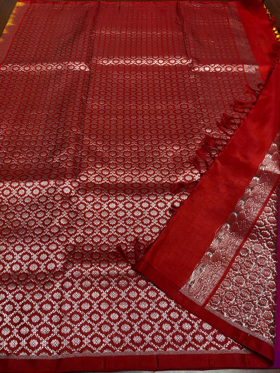 Dual Tone Red Venkatagiri Handloom Pattu Silk Meenakari Saree