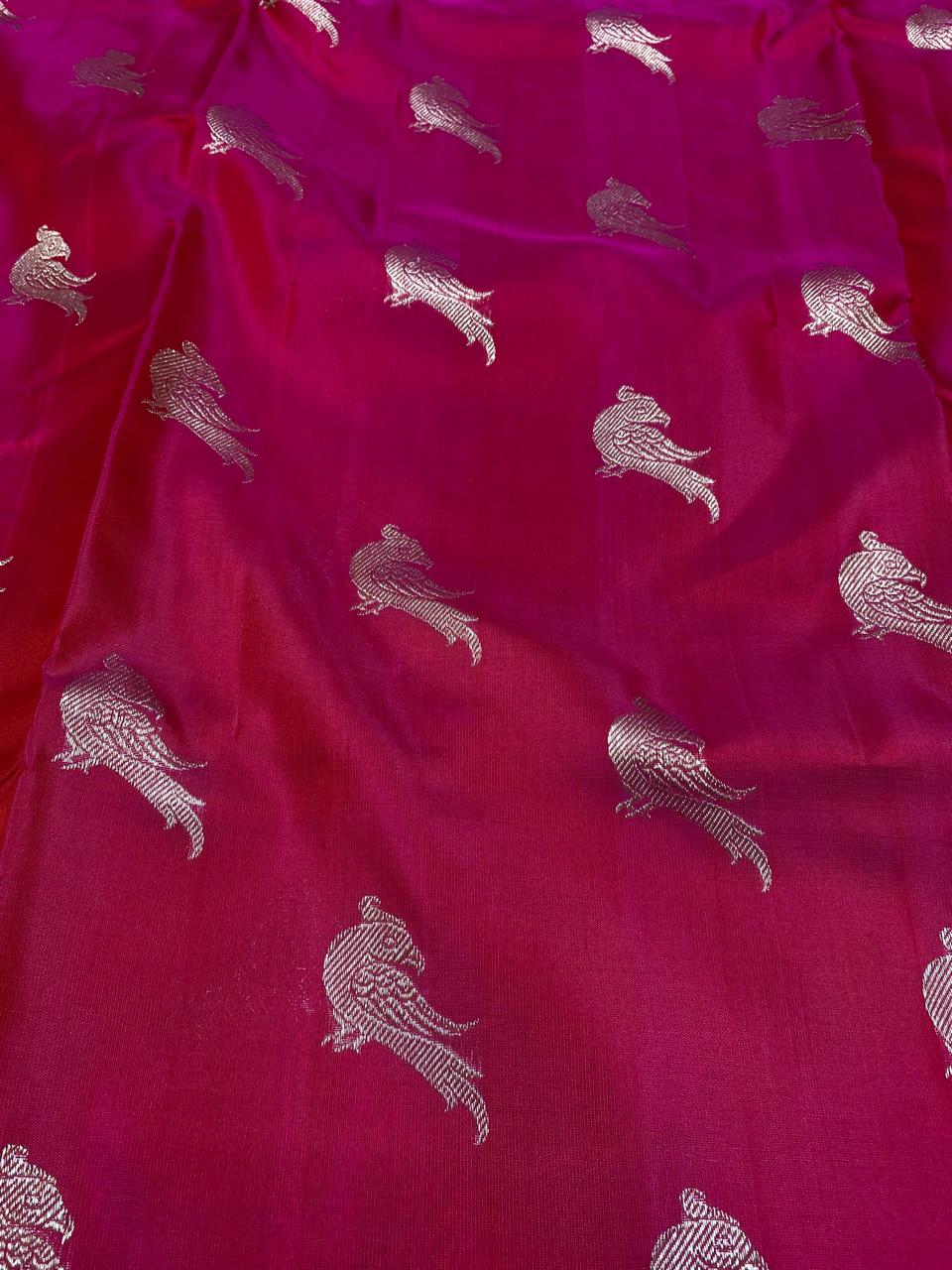 Dual Tone Hot Pink Venkatagiri Handloom Pure Pattu Silk Saree