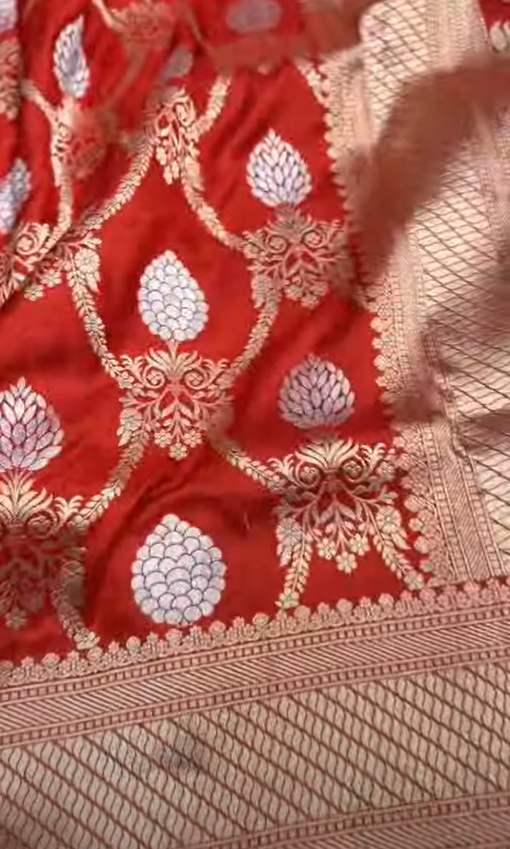 Red Banarasi Handloom Katan Silk Chand Tara Bridal Saree