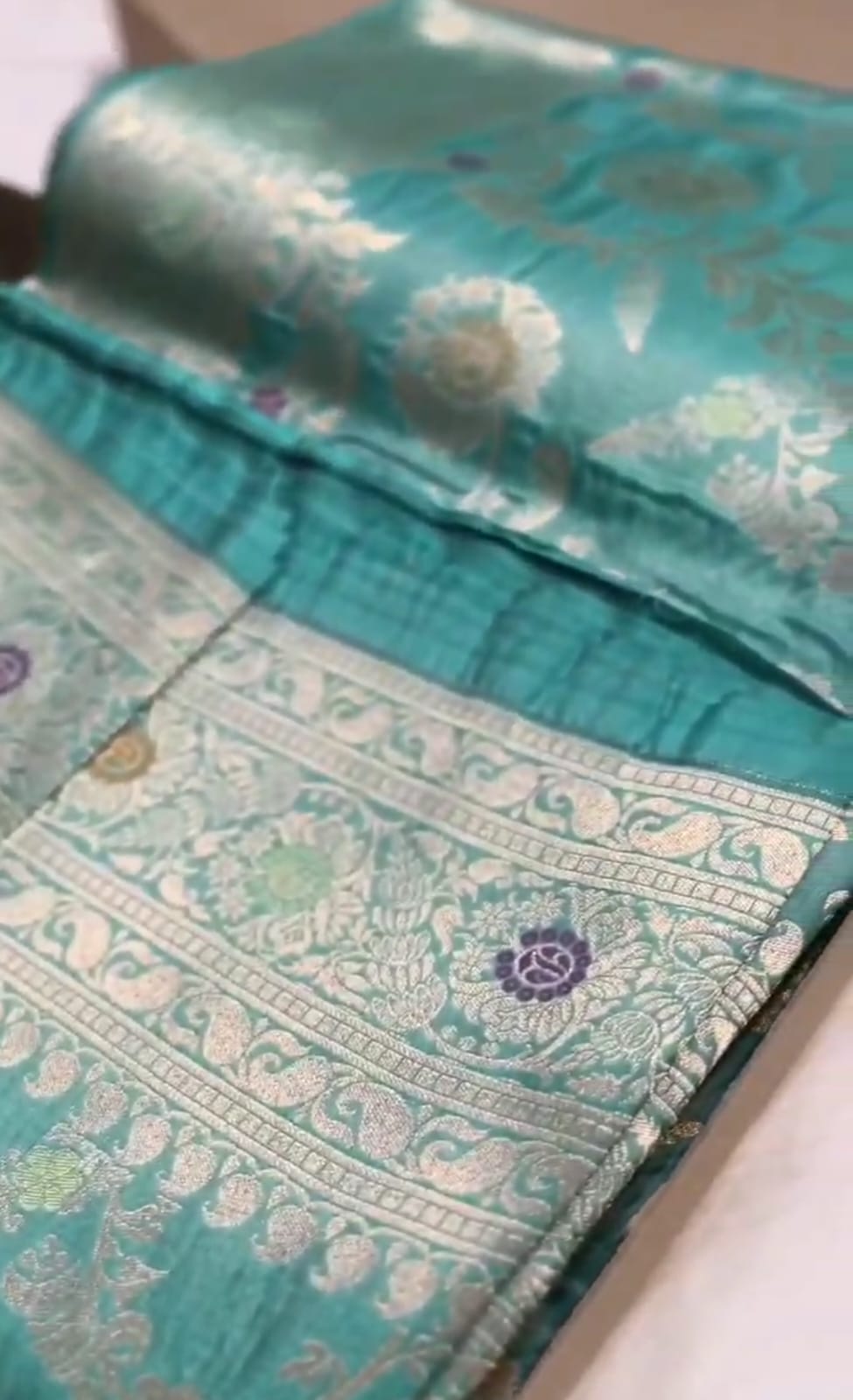 Turquiose Banarasi Handloom Katan Silk Sona Rupa Saree