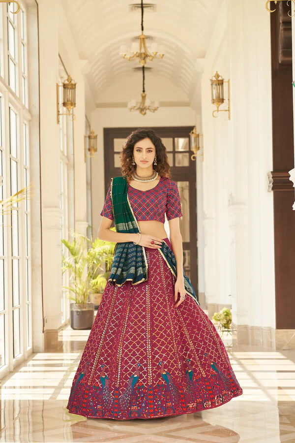 Festive Maroon Lehenga Choli with Matching Printed Dupatta