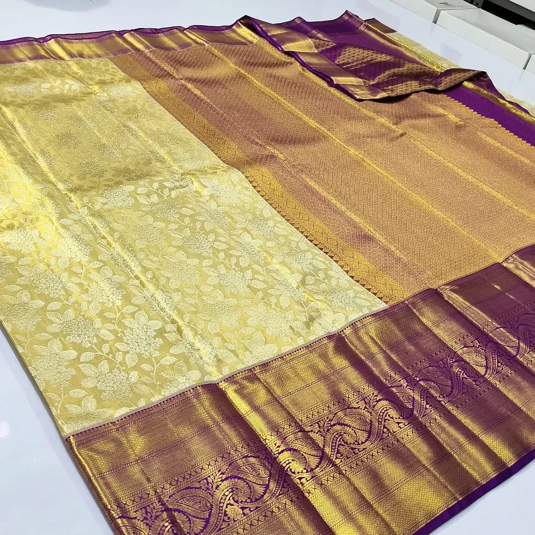 Gold & Purple Kanchipuram Handloom Tissue Brocade Meenakari Silk Saree
