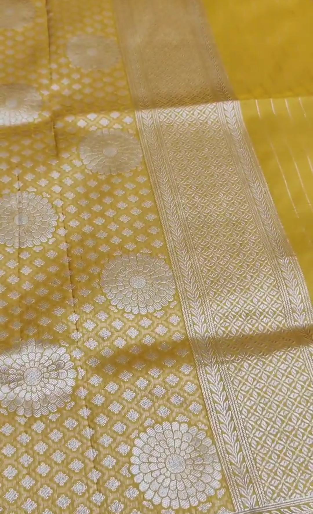 Golden Yellow Banarasi Handloom Katan Silk Sona Rupa Saree