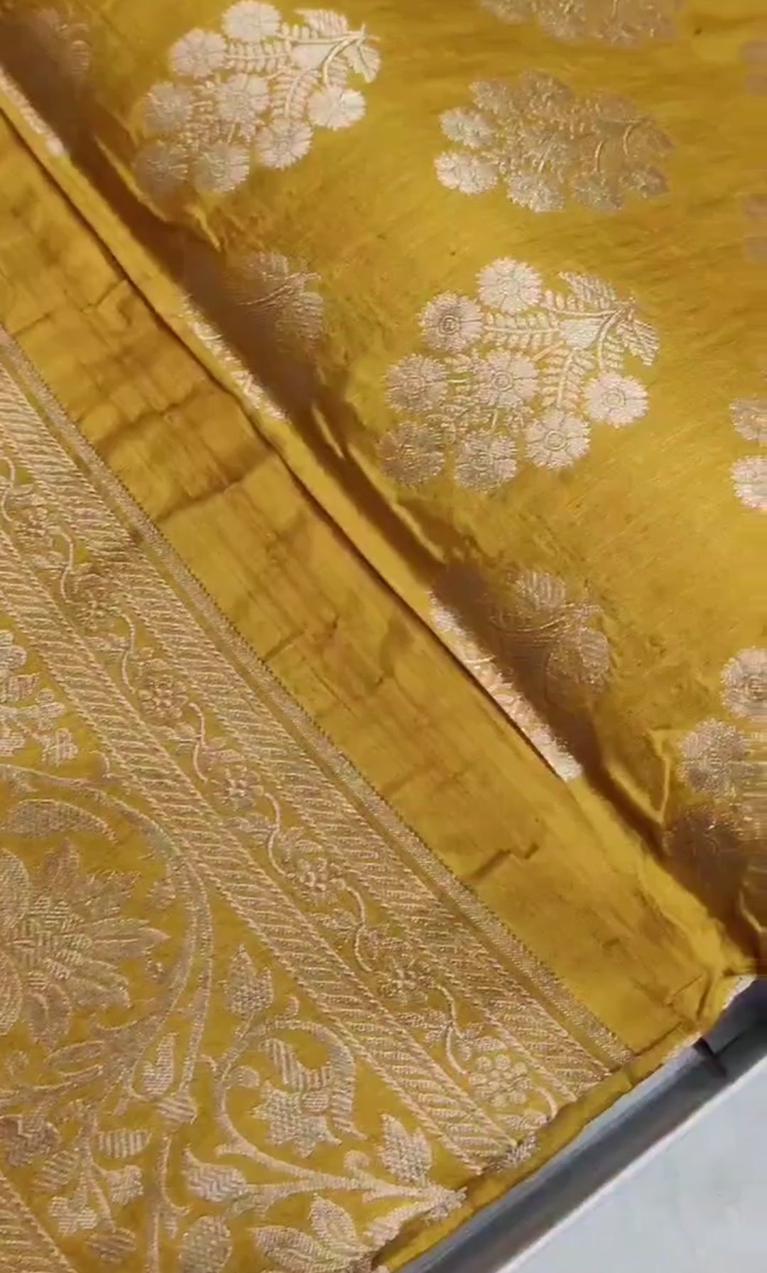 Golden Yellow Banarasi Handloom Katan Silk Sona Rupa Saree