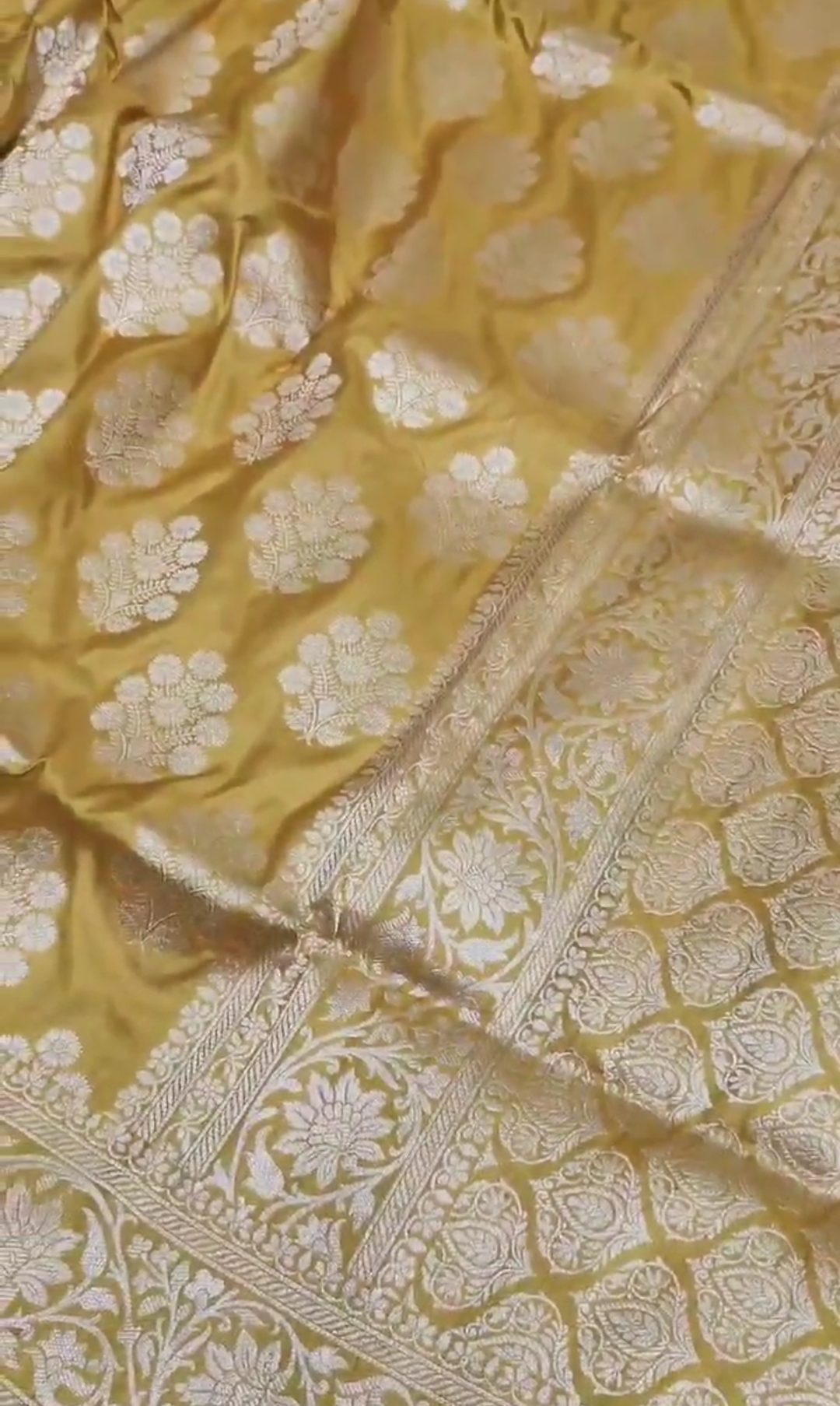 Mustard Banarasi Handloom Katan Silk Rangkaat Meenakari Saree