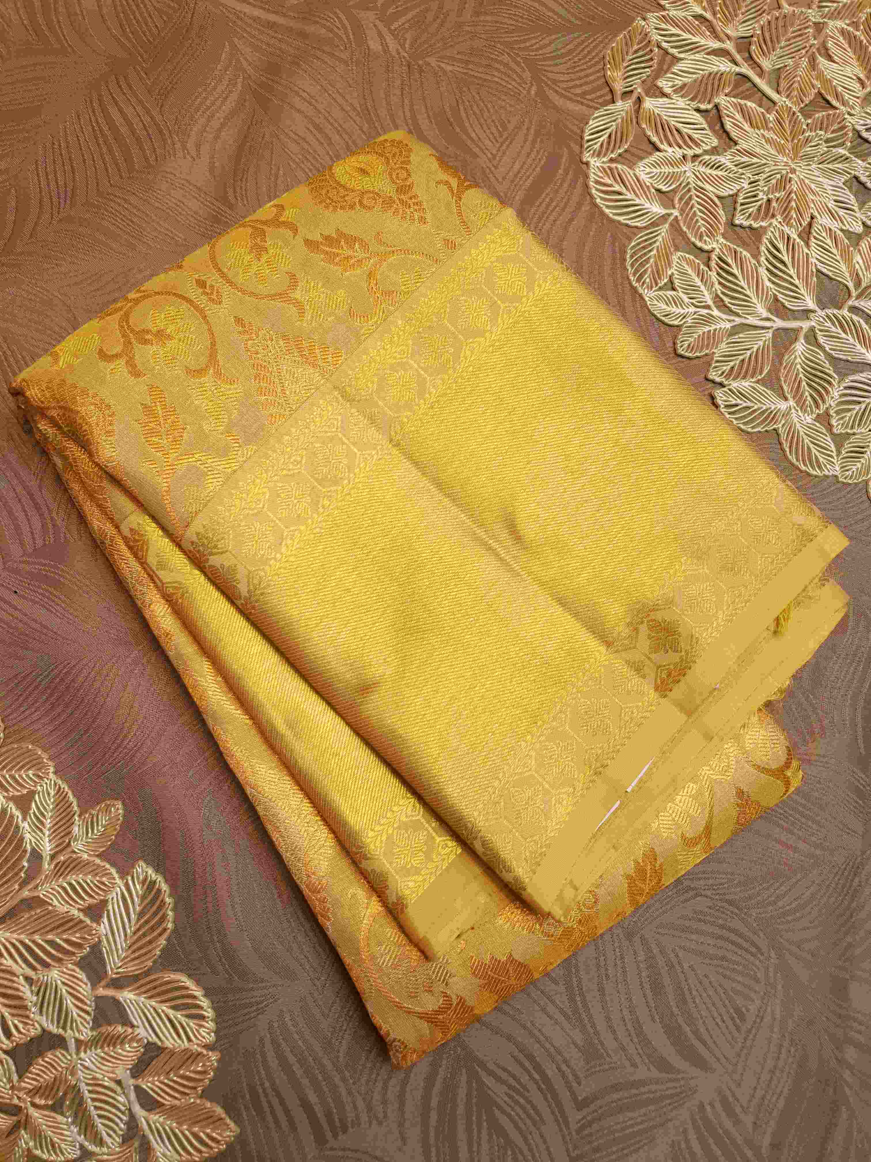 Yellow Gold Kanchipuram Handloom 2G Gold Brocade Pattu Silk Saree
